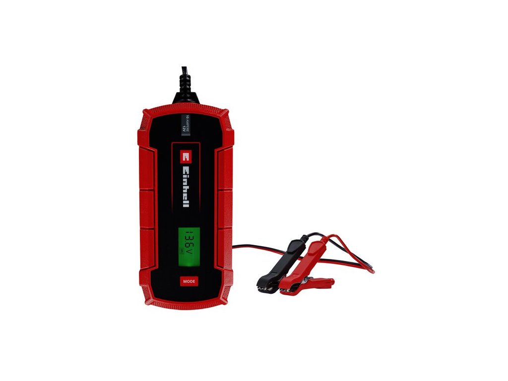 Die LCD-Batteriespannungs- und Ladefortschrittsanzeige zeigt auf einen Blick, auf welchem Ladezustand sich die Batterie befindet und auf welchen Modus das Ladegerät eingestellt ist. Durch die vollisolierten Batterieklemmen lassen sich die Batterien einfach und sicher an dem Batterieladegerät von Einhell anschließen. Das Gehäuse ist mit einer Aufhängöse versehen zur Befestigung an der Wand.