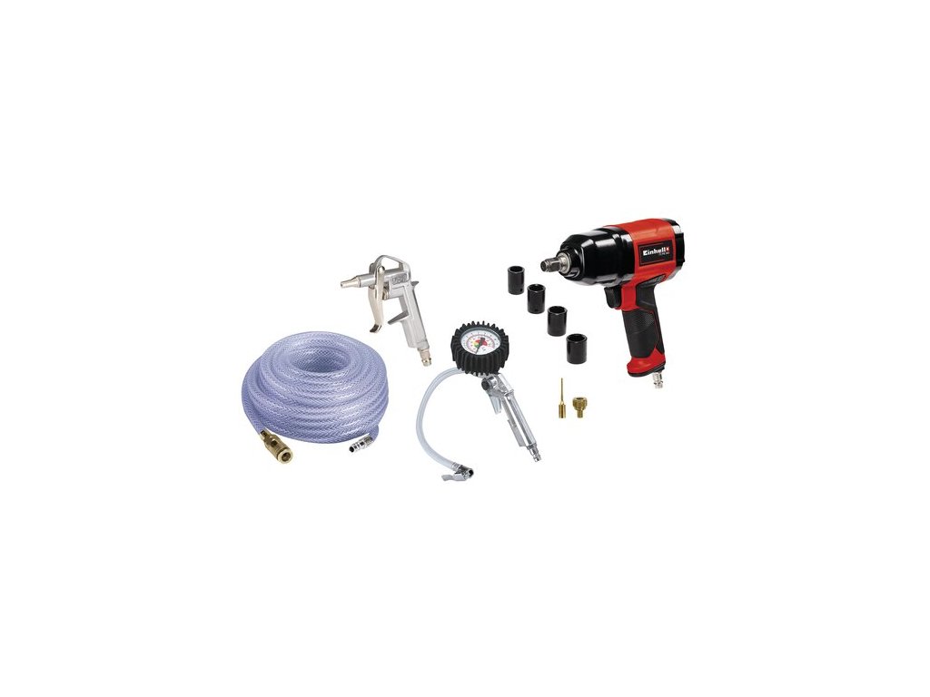 Das Original Einhell 10-teilige Druckluftzubehörset ist hilfreich bei einer Vielzahl von Aufgaben in Werkstatt oder Garage. Es ist passend für Kompressoren mit einem Arbeitsdruck von max. 8 bar. Der Druckluft-Schlagschrauber weist ein max. Drehmoment von 340 Nm auf. Die Ausblaspistole ist ideal zum Reinigen von Oberflächen und Arbeitsbereichen.