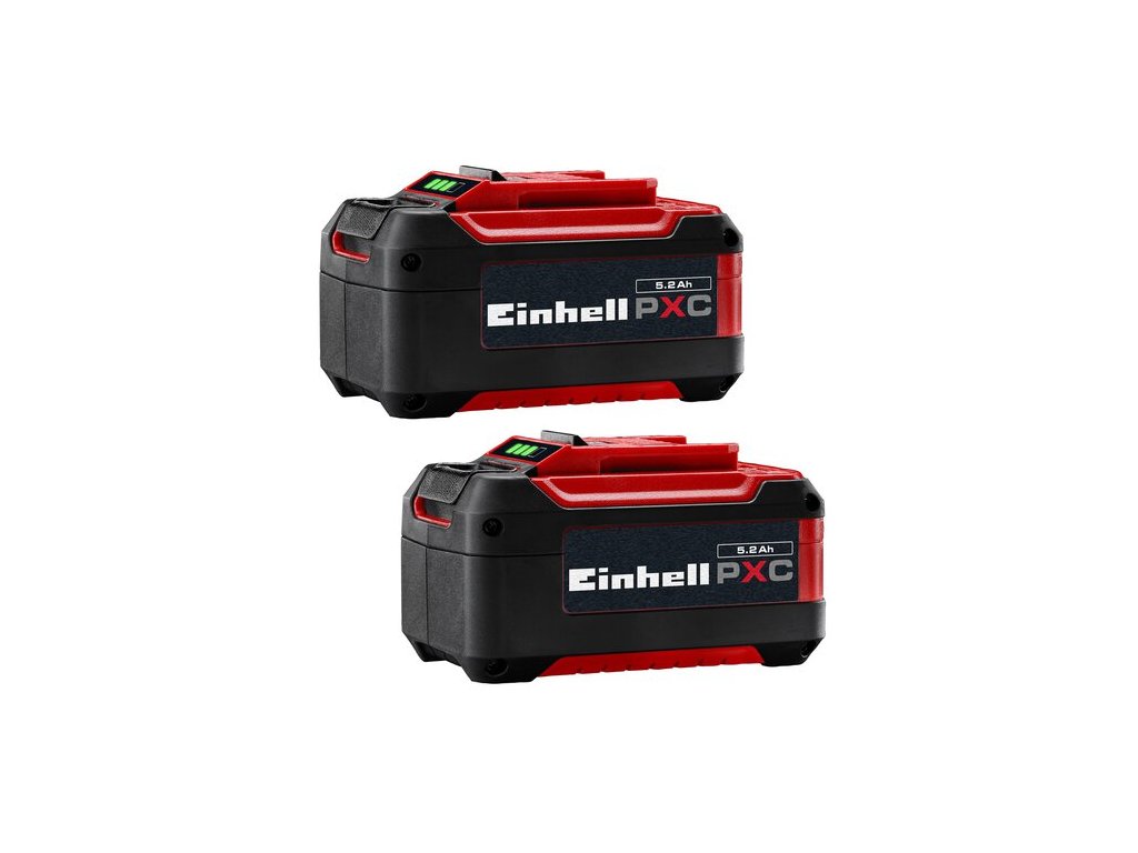 Die 2x 18 V 5,2 Ah Power X-Change PLUS Akkus gehören zum multifunktionalen und grenzenlos untereinander kombinierbaren Akkusystem Power X-Change von Einhell. Die universell einsetzbaren Power X-Change-Akkus versorgen alle Akkugeräte der gesamten Produktfamilie im Garten- und Werkstattbereich mit Kraft und Ausdauer. Der 18 Volt 5,2 Ah PXC PLUS ist ein High-End-Akku der Power X-Change-Familie und auch geeignet für den TWIN-PACK Einsatz bei 36-V-Anwendungen. Mit zwei 5,2 Ah Akkus als TWIN-PACK kann man länger arbeiten und die Geräte können mit mehr Power (2x 18 V = 36 V) versorgt werden. Das prozessgesteuerte, aktive Batteriemanagementsystem ABS überwacht mithilfe des eingesetzten Mikroprozessors stetig die Parameter des Akkus. Dadurch sorgt es für höchste Sicherheit, optimale Geräteperformance, maximale Laufzeit und maximale Lebensdauer. Der aktuelle Ladezustand kann durch eine 3-stufige LED-Anzeige kontrolliert werden. Das Gehäuse widersteht aufgrund der Bauweise Staub, Korrosion und mechanischen Einflüssen. Die Gummierung verleiht dem Akku hohen Stoßschutz und eine gute Griffigkeit. Mithilfe der Griffmulde kann dieser wieder leicht aus allen Geräten entfernt werden.