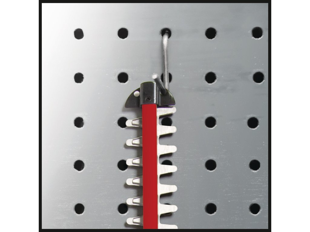 Der integrierte Zweihand-Sicherheitsschalter bringt die Messer bei Loslassen eines Schalters in weniger als 1 Sekunde zum Stillstand. Die Messer werden durch eine Messerabdeckung aus Aluminium geschützt. Der Stoßschutz ist mit einer Bohrung für die Wandbefestigung versehen, wodurch die Heckenschere im Handumdrehen platzsparend verstaut ist. Dabei sorgt das Metallgetriebe für hohe Langlebigkeit und die aus lasergeschnittenem und diamantgeschliffenem Stahl gefertigten Messer für saubere Schnittresultate. Im stabilen Köcher lässt sich die GC-CH 1846 Li Kit sicher und bequem transportieren oder verstauen.