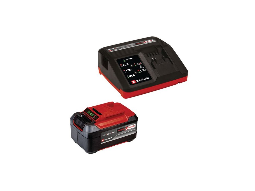 Das Einhell 18 V 5,2 Ah Power X-Change PLUS Starter Kit ist die ideale Basis, um das heimische Power X-Change-Sortiment zu beginnen oder auszubauen. Das Starter-Kit mit einem 18 V 5,2 Ah Power X-Change-Plus-Akku und dem Schnellladegerät gehört zum multifunktionalen und grenzenlos untereinander kombinierbaren Akkusystem Power X-Change von Einhell. Die universell einsetzbaren Power X-Change-Akkus versorgen alle Akkugeräte der gesamten Produktfamilie im Garten- und Werkstattbereich mit Kraft und Ausdauer. Auch die Ladegeräte der Reihe sind universell für alle PXC-Akkus verwendbar. Außerdem steht die PLUS-Technologie für extra Power bei leistungsintensiven Arbeiten. Zudem widersteht der hochwertige Akku dem Memory-Effekt und der batterieüblichen Selbstentladung für konstante, hohe Power. Der 18 Volt 5,2 Ah PXC PLUS ist ein High-End-Akku der Power X-Change-Familie und auch geeignet für den TWIN-PACK Einsatz bei 36V-Anwendungen. Das prozessgesteuerte, aktive Batteriemanagementsystem ABS überwacht mithilfe des eingesetzten Mikroprozessors stetig die Parameter des Akkus. Dadurch sorgt es für höchste Sicherheit, optimale Geräteperformance, maximale Laufzeit und maximale Lebensdauer. Der aktuelle Ladezustand kann durch eine 3-stufige LED-Anzeige kontrolliert werden.