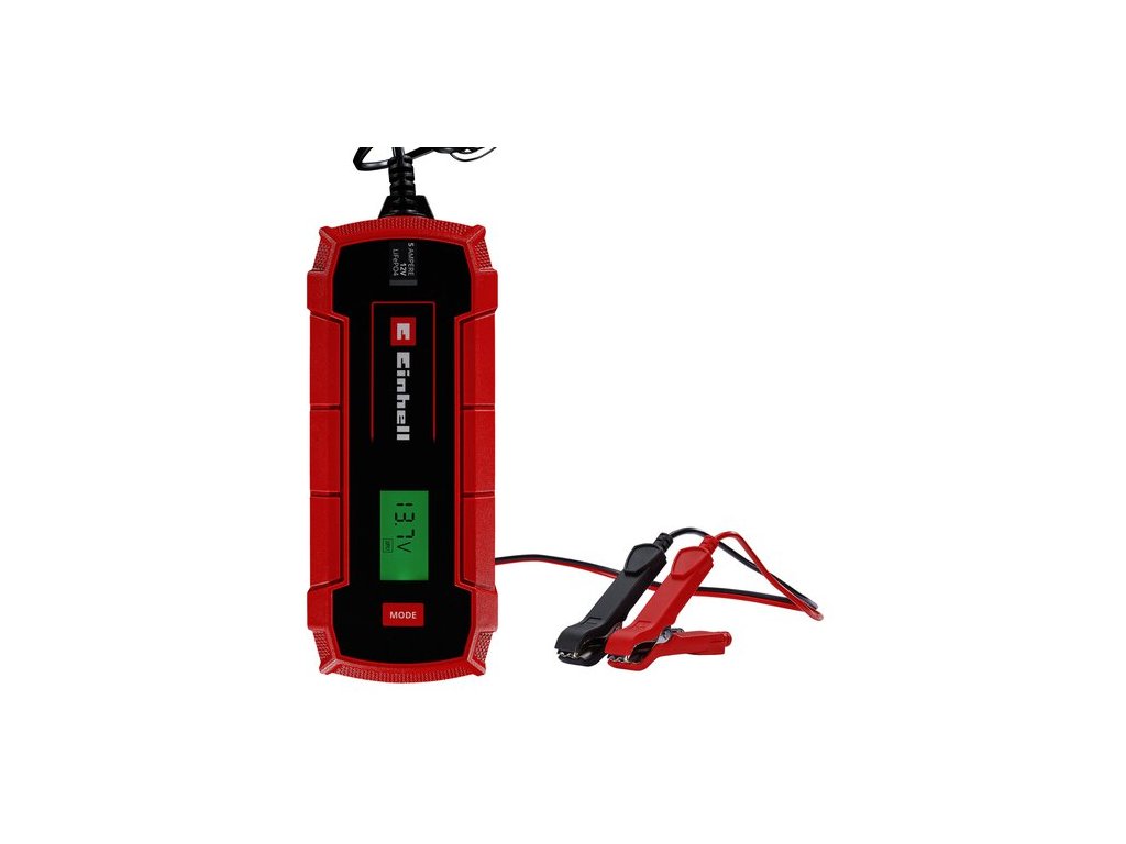 Das Einhell Batterieladegerät erfüllt die IP-Schutzklasse 65, womit es staubdicht und gegen Strahlwasser geschützt ist. Die LCD-Batteriespannungs- und Ladefortschrittsanzeige zeigt auf einen Blick, auf welchem Ladezustand sich die Batterie befindet und auf welchen Modus das Ladegerät eingestellt ist. Dabei unterscheidet das Gerät in vier Ladestufen und im Anschluss von 12 Volt Batterien. Die Anzeige auf dem Einhell Batterieladegerät weist ebenfalls auf einen falschen Anschluss der Zangen und andere Probleme hin. Durch die vollisolierten Batterieklemmen lässt sich das Batterie-Ladegerät einfach und sicher anschließen. Das Gehäuse ist mit einer Aufhängöse versehen zur Befestigung an der Wand.