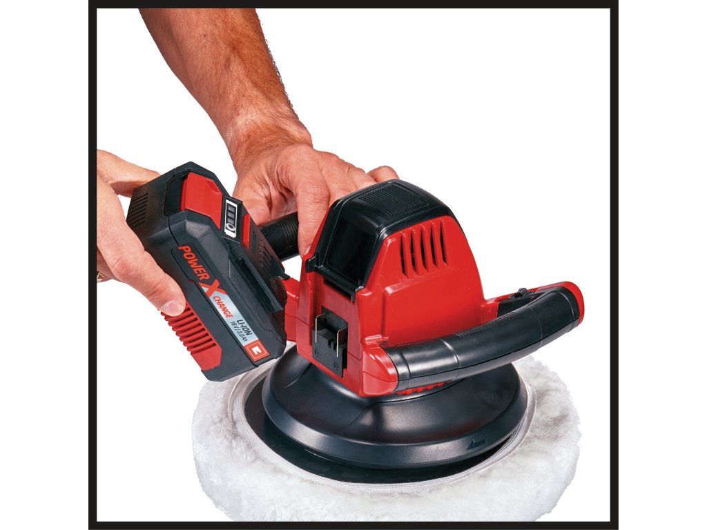 Mit der Einhell CE-CB 18/254 Li - Solo Akku-Autopoliermaschine polieren Sie Ihr Auto schnell auf Hochglanz. Das Geheimnis: Flexibilität mit Bewegungsfreiheit beim Arbeiten durch den Betrieb mit einem leistungsstarken Lithium-Ionen-Akku. Der Akku ist Mitglied der innovativen Power X-Change Familie von Einhell und kann in allen Geräten der Systemserie eingesetzt werden. Für eine lange Lebensdauer ist die Poliermaschine bedienerfreundlich und robust konstruiert, während der Softgrip zu einer komfortablen und ermüdungsarmen Bedienung und einem perfekten Halt beiträgt.