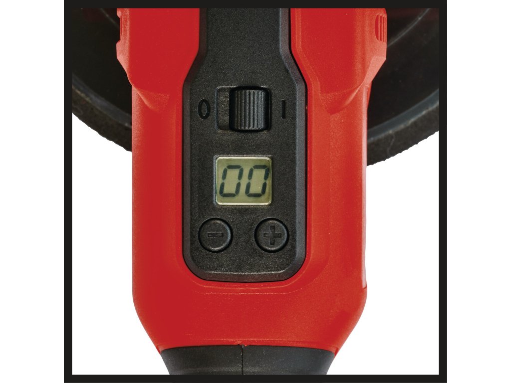 Dank der elektronischen Drehzahlregulierung über LCD-Display kann der Heim- und Handwerker einfach und übersichtlich die Drehzahl je nach Anwendungsgebiet anpassen. Für angenehmes Arbeiten sorgen der ergonomische Griff für optimalen Halt und kontrollierte Führung sowie die schlanke Bauform mit Softgrip. Die Mikro-Kletthaftung erlaubt den schnellen Wechsel der Aufsätze. Die Spindelarretierung dient der problemlosen Befestigung des Poliertellers. Die Lieferung erfolgt ohne Akku und ohne Ladegerät. Diese sind separat erhältlich, zum Beispiel als praktisches Starterset. Empfohlen wird für optimale Ergebnisse der 2,5 Ah Akku von Einhell und größer.