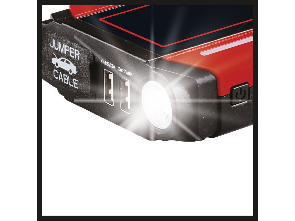 Die Einhell CE-JS 18/1 Jump-Start - Power Bank ist eine kompakte und handliche Starthilfe & Energiestation und damit idealer Begleiter in jedem Fahrzeug und für unterwegs. Mit nur einem Gerät können sowohl leere Autobatterien überbrückt, als auch mobile Stromverbraucher wie Handy, Laptop, Kamera, etc. schnell und einfach wieder geladen werden. Der leistungsstarke Lithium-Polymer Akku mit 3 x 6000 mAh Kapazität sorgt dabei jederzeit für ausreichend Leistung. Über die Ladezustandsanzeige ist zudem der aktuelle Ladezustand über die LEDs schnell abzulesen.