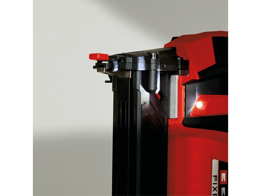 Der Einhell Professional Akku-Tacker FIXETTO 18/38 S ist ein kraftvoller Helfer bei Renovierungs- und Dekorationsarbeiten. Ob beim Polstern von Möbeln, Tackern von Holzplatten oder Befestigen von Folien, Planen oder Dämmstoffen – mit dem Akku-Tacker kann je nach Arbeitsaufwand per Schussregler einfach zwischen Einzel- und Serienschuss gewählt werden. Als Mitglied der Power X-Change-Familie kann der FIXETTO 18/38 S mit allen Akkus und Ladegeräten der Systemfamilie kombiniert werden. Das robuste Getriebe und die wartungsfreie PressAir-Technology ermöglichen bis zu 60 Einschläge pro Minute, die Tiefeneinstellung sorgt für eine variable und exakte Einschlagtiefe der Klammern. Das große Magazin ist mit einer Füllstandsanzeige ausgestattet und hat eine Kapazität von maximal 100 Klammern. Per Knopfdruck kann es einfach geöffnet und nachgefüllt werden.