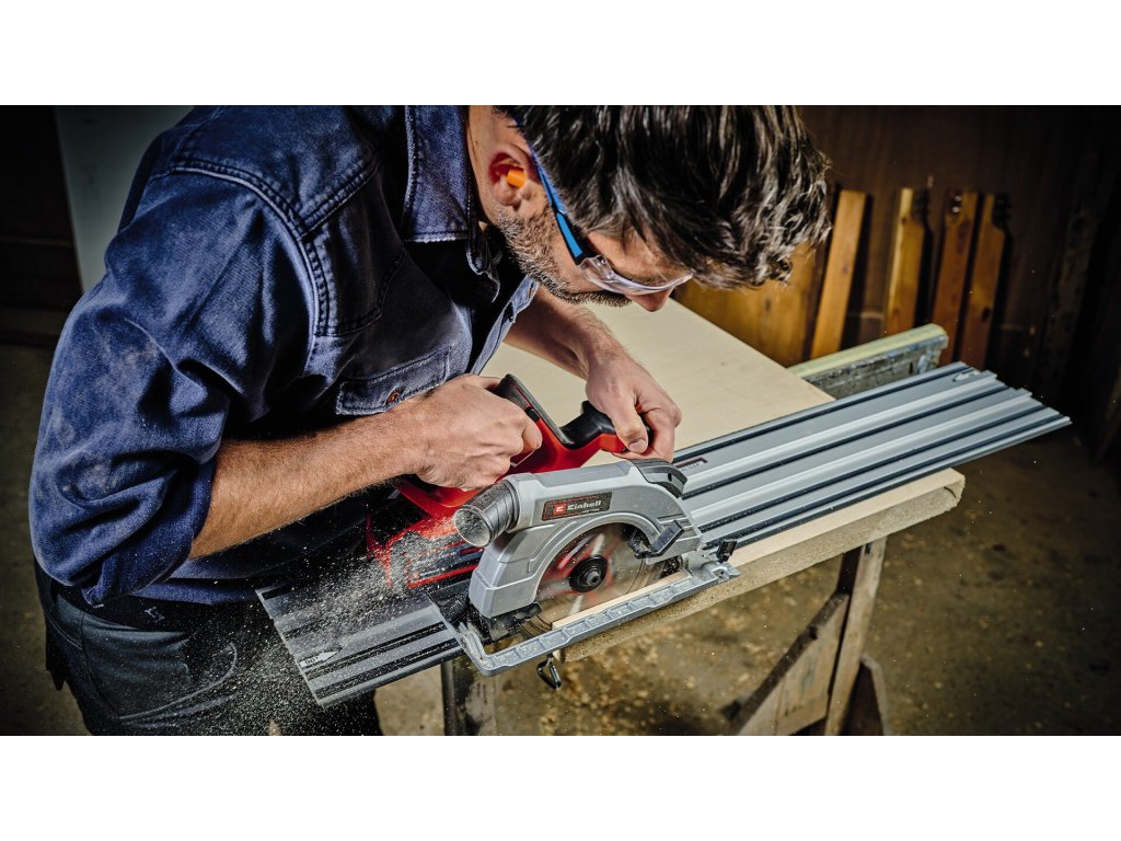Die Original Einhell Führungsschiene Alu 2x 1000 mm ist eine ideale Hilfe für saubere, professionelle und sichere Schnitte mit Handkreissägen. Sie ist kompatibel mit allen Einhell (Akku-)Handkreissägen und Tauchsägen. Die Alu-Führungsschiene ermöglicht präzise und gerade Schnitte und bietet zudem erhöhte Sicherheit. Selbst Winkelschnitte sind mit der Führungsschiene kein Problem. Der Gleitbelag sorgt für den Leichtlauf der Maschinen, während der Splitterschutz saubere Schnittkanten ermöglicht. Ein Verbindungselement stellt sicher, dass die beiden Schienenteile exakt gerade sind. Haftbänder machen die Unterseite rutschfest.