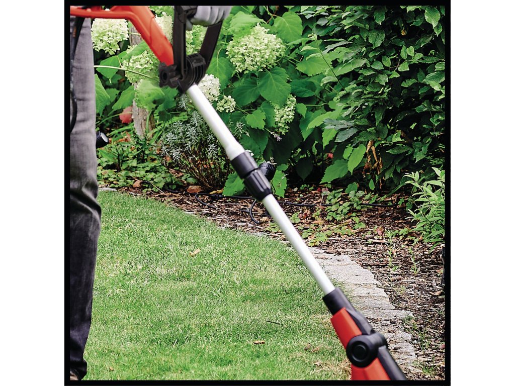 Der Elektro Rasentrimmer GC-ET 4530 ist ein praktisches und sehr leistungsstarkes Gerät, das müheloses Trimmen schwer zugänglicher Gartenbereiche für einen gepflegten Garten ermöglicht. Dank einem um 180° drehbaren und vierfach neigbaren Motorkopf zum bequemen Schneiden an senkrechten Flächen, ist das Gerät vielseitig einsetzbar. GC-ET 4530 verfügt über einen robusten Elektromotor. Sein stufenlos teleskopierbarer Aluminium Führungsholm mit verstellbarem Zusatzhandgriff ermöglicht eine bequeme Zweihandführung und die genaue Anpassung an die Körpergröße für ermüdungsfreies Arbeiten.