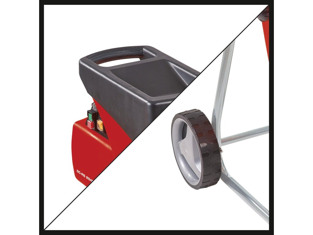 Der Elektro-Leisehäcksler GC-RS 2540 ist ein leistungsstarkes und zuverlässiges Gerät, mit dem sich Häckselgut wie Baum- und Heckenschnitt oder Gartenabfälle zügig und geräuscharm zerkleinern lässt. Seine langlebige Schneidwalze zieht das Häckselgut kraftvoll in die groß dimensionierte Trichteröffnung. Dank robustem Fahrgestell mit Rädern und praktischem Transportgriff lässt sich das Gerät einfach und bequem transportieren. Der Motorschutzschalter des Geräts schützt den Motor vor Überlastung. Ein Sicherheitsschalter sowie ein Wiederanlaufschutz sorgen für eine sichere Anwendung. Der GC-RS 2540 ist mit einem Drehrichtungsumschalter ausgestattet, mit dem sich die Schneidwalze auf Rückwärtslaufen schalten lässt, um Verstopfungen schnell und mühelos zu beheben. Ein Gartenabfallsack ist ebenfalls im Lieferumfang inbegriffen.