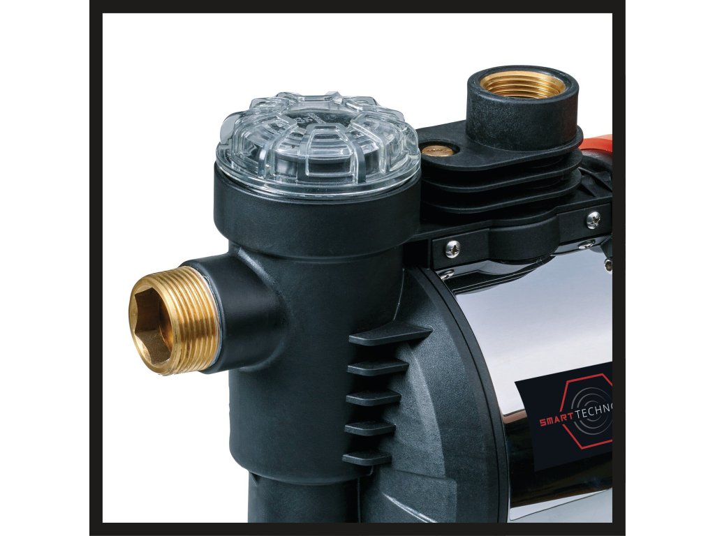 Smart Garden: Die Automatische Gartenpumpe GE-AW 1144 SMART von Einhell macht's möglich: Dank App-Steuerung ist Bewässerung von überall aus möglich – ganz ohne Bluetooth oder WLAN und mit unbeschränkter Reichweite. Über die Einhell Connect App kann die Pumpe in hochwertiger Edelstahl-Optik manuell ein- oder ausgeschaltet werden. Und wer es ganz bequem möchte: Per App lässt sich auch eine Zeitplanbewässerung für feste Bewässerungszeiten einrichten. Auch eine smarte Bewässerung ist mithilfe von künstlicher Intelligenz und Echtzeit-Wetterdaten zum Standort der Gartenpumpe ebenfalls über die App möglich. Smart Garden mit Einhell? Die intelligente, automatische Gartenpumpe ist mit anderen smarten Einhell Geräten vernetzbar. Mit 1.100 Watt lassen sich bis zu 4.400 Liter pro Stunde fördern. Das Gerät kann auch als klassischer Hauswasserautomat (ohne App) verwendet werden: Die Automatikfunktion schaltet die Pumpe bei Wasseranforderung oder Druckabfall ein oder aus. Eine große Wassereinfüllschraube erleichtert das Befüllen der Pumpe. Durch die Wasserablassschraube kann die Gartenpumpe winterfest gemacht werden, so dass sie vor Frost geschützt ist. Weiteren Schutz bieten die Trockenlaufsicherung, die Schäden durch Trockenlaufen verhindert, und der Thermoschutz gegen Überlastungsschäden am Motor. Vor Verunreinigungen ist die Pumpe durch einen Vorfilter geschützt. Per Rückschlagventil werden der Rückfluss und das Abfallen des Wasserstandes verhindert und ein schneller Ansaugvorgang sichergestellt. Hochwertige Gleitringdichtungen sorgen für einen geringeren Verschleiß. Die LED-Anzeige an der intelligenten Gartenpumpe gibt Auskunft über den Status der Pumpe und mögliche Fehler. Für hochwertige Qualität und Langlebigkeit sorgen der Saug- und Druckanschluss mit Messinggewinden. Die Lieferung erfolgt inklusive Adapter 33,3 mm (R1AG) passend für 1" Saugschlauch-Anschlüsse, Schlüssel für Vorfilterkappe und einer Zusatzantenne.