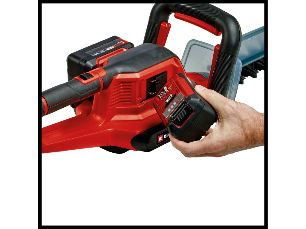 Mit bis zu 2.700 Schnitten pro Minute und einer Schwertlänge von 720 Millimeter arbeitet sie sich durch Hecken, Büsche und Sträucher. Die Messer sind aus lasergeschnittenem und diamantgeschliffenem Stahl gefertigt und ebenso wie das Metallgetriebe für eine lange Lebenszeit konzipiert. Angenehm arbeiten lässt es sich mit dem drehbaren Griff und dem ergonomischen, schmalen Frontgriff mit Mikroschalter. Praktisch ist der Schnittgutsammler. Die Akku-Heckenschere hat eine Alu-Messerabdeckung, außerdem gehört der Stoßschutz mit Halterung für die Wandmontage sowie ein stabiler Köcher für Lagerung und Transport zum Ausstattungsumfang. Die Lieferung erfolgt ohne Akku und ohne Ladegerät, diese sind separat erhältlich, zum Beispiel als praktisches Starterkit.