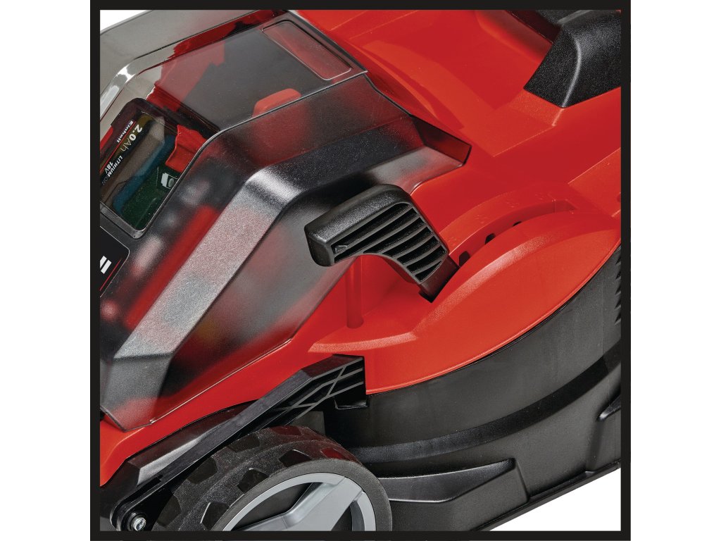 Der Akku-Rasenmäher GE-CM 36/33 Li ist ein sehr hochwertiges, zuverlässiges und äußerst leistungsstarkes Gerät für die kabellose Pflege kleinerer Rasenflächen. Durch das Power X-Change Batteriesystem von Einhell verfügt der Rasenmäher über zwei starke 18 V Akkus mit jeweils 2,5 Ah, für angenehme Einsätze ohne lästiges Stromkabel. Die fünfstufige zentrale Schnitthöhenverstellung erlaubt die einfache, individuelle Einstellung der Schnitthöhe. Der GE-CM 36/33 Li ist mit einem klappbaren Schubbügel mit Schnellspannhebeln ausgestattet und kann zweifach in der Höhe verstellt werden. Jeder Akku verfügt über eine Akku-Füllstandanzeige mit drei LEDs, auf der sich der aktuelle Ladezustand auf einen Blick ablesen lässt. Die Akkus können zudem für sämtliche Geräte der Power X-Change Familie verwendet werden. Zum Lieferumfang gehören zusätzlich zwei System-Ladegeräte. Seine großflächigen Räder schonen zudem den Rasen. Der große Grasfangkorb ist mit einer Füllstandanzeige ausgestattet, so dass man sofort sieht, wenn eine Leerung erforderlich wird. Das langlebige Gehäuse besteht aus hochwertigem, schlagzähem Kunststoff. Ein praktischer Tragegriff sorgt für den einfachen Transport. Der GE-CM 36/33 Li wird für Rasenflächen bis 250 m² empfohlen.