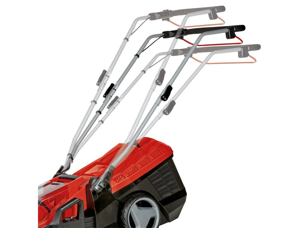 Angetrieben wird das Gerät von dem Einhell PurePOWER Brushless Motor. Dieser bürstenlose Motor bietet mehr Kraft und eine längere Laufzeit als herkömmliche Kohlebürsten-Motoren. Nach einer Online-Registrierung gelten 10 Jahre Garantie auf den Brushless-Motor. Der Highwheeler mit großen, rasenschonenden Rädern verfügt über eine 6-stufige zentrale Schnitthöhenverstellung sowie einen 3-fach höhenverstellbaren und klappbaren Führungsholm für die bequeme Bedienung und einen großzügig bemessenen Grasfangkorb mit Füllstandsanzeige. Der Mäher mit einem hochwertigen, schlagzähen Kunststoffgehäuse ist überdies mit einem integrierten Tragegriff ausgerüstet, mit dem sich der Mäher einfach transportieren lässt.
