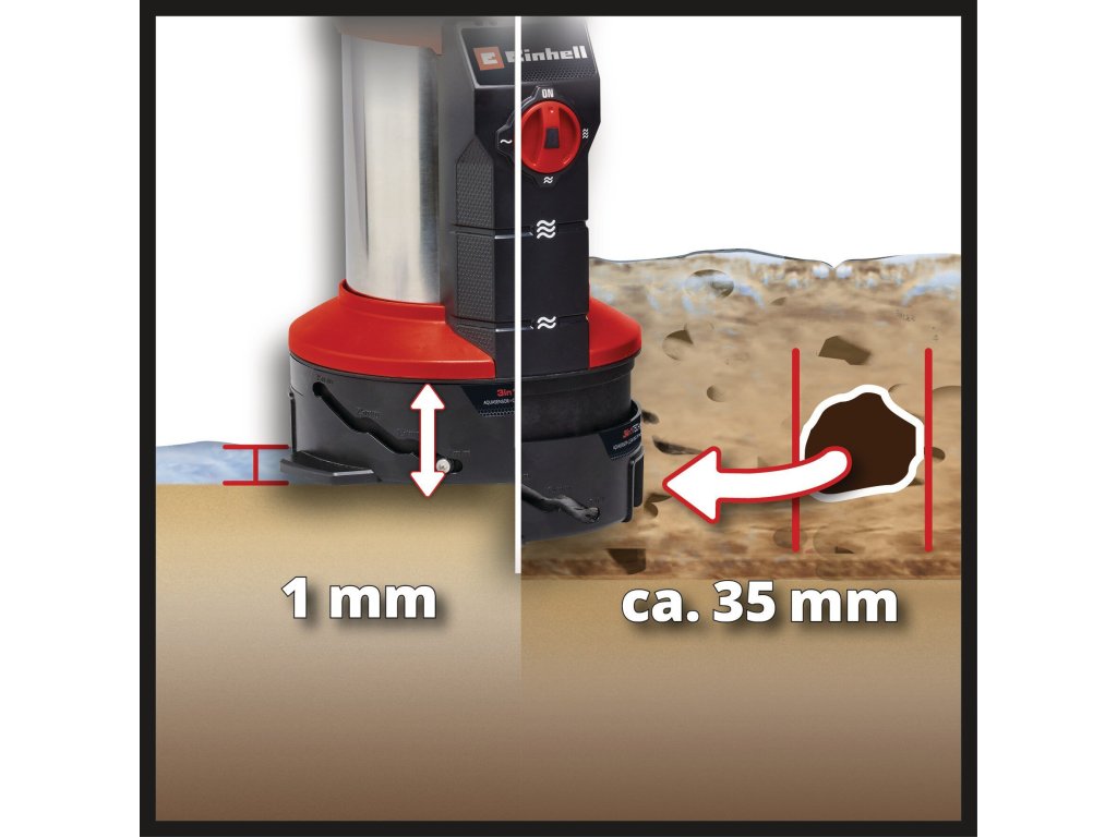 Der Trockenlaufschutz sorgt dafür, dass der Motor nur arbeitet, wenn die Schmutzwasserpumpe im Wasser ist und vermeidet dadurch Schäden am Gerät. Ein Pumpenstart ist bereits ab 15 mm Wasserhöhe möglich. Mit der Absaugniveau-Regulierung durch eine einfache Drehbewegung kann eine schnelle Anpassung in 4 Stufen der gewünschten Funktion erfolgen. Eine Pumpe für zwei Aufgaben: flachabsaugend bis zu 1 mm Restwasserstand im Klarwasserbetrieb oder Absaugen von Schmutzwasser mit einer Korngröße von bis zu 35 mm. Mithilfe von Aufhängeösen kann ein Seil optimal an der Pumpe befestigt werden, wodurch sie leicht und kontrolliert abgelassen werden kann. Das extrem robuste Pumpengehäuse aus Edelstahl und die hochwertige Gleitringdichtung halten selbst harten Entwässerungsaufgaben zuverlässig stand und ermöglichen eine lange Lebensdauer. Durch den praktischen, ergonomischen Tragegriff ist diese 2-in-1-Kombinationspumpe schnell und einfach an jedem Ort einsatzbereit und eine Kabelaufwicklung sorgt für ein sauberes Verstauen. Der Lieferumfang enthält einen Quick-Connector zum schnellen Schlauchwechsel und einen Universaladapter für 25/38 mm-Schläuche sowie 33,3 mm (G 1") AG.