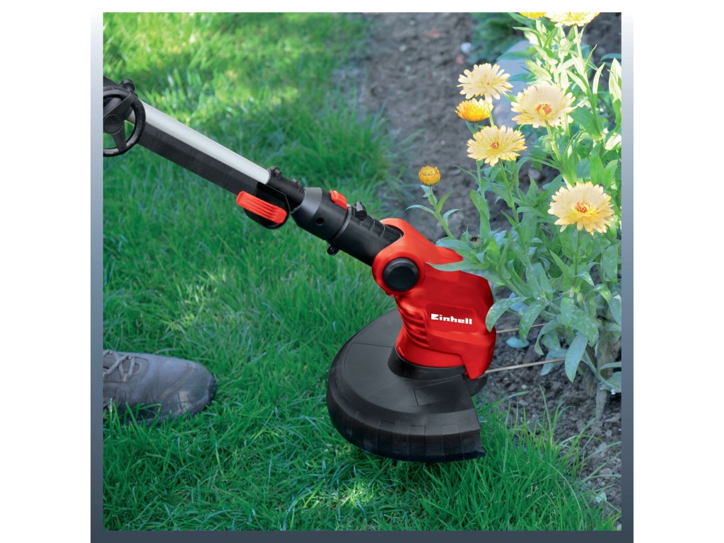 Das Mähen mit einem Faden garantiert ein sauberes Aussehen der gemähten Fläche und ermöglicht die Fadenzuführung durch einen automatischen Schrittmodus. Mit Hilfe des Führungsrades lassen sich Rasenränder und Beete perfekt mähen. Der praktische Schutz vor ungewolltem Mähen von Blumen sorgt für einen sicheren Abstand zu Ihren geliebten Blumen und damit für die Erhaltung des schönen Aussehens Ihres Gartens. Das Stromkabel des Trimmers ist durch eine Kabelhalterung vor Verschleiß geschützt, um die Zugkraft zu verringern.
