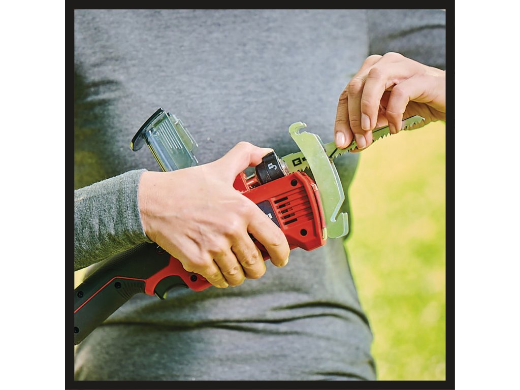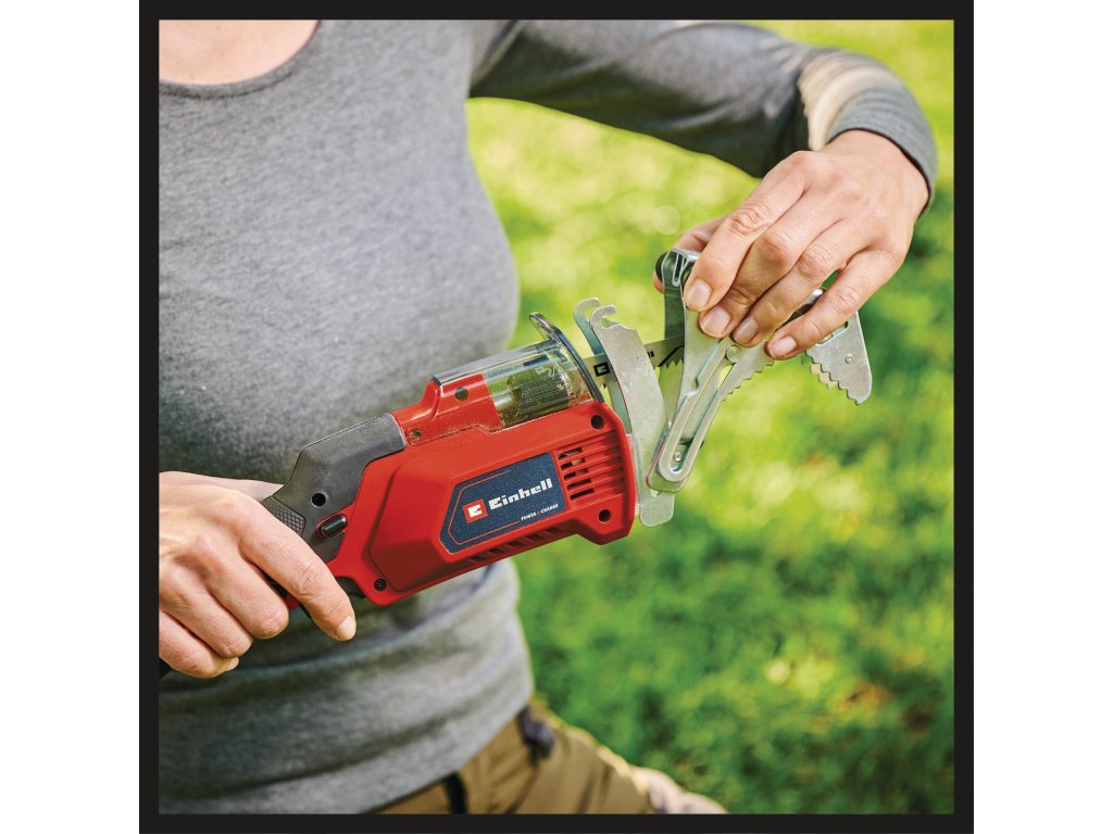 Kompakt, leicht und schnell zur Hand ist die Einhell Akku-Astsäge GE-GS 18/150 Li-Solo, wenn es darum geht kleinere Äste an Bäumen, Sträuchern und Co. zu sägen. Die Akku-Astsäge ist Teil der leistungsstarken Power X-Change Familie, in der Akkus, Ladegeräte und Systemgeräte flexibel miteinander kombiniert werden können. Zum Schutz des Akkus ist die Astsäge mit einer schwingungsentkoppelten Batterieaufnahme ausgestattet, die die Übertragung von Vibrationen auf den Akku reduziert.