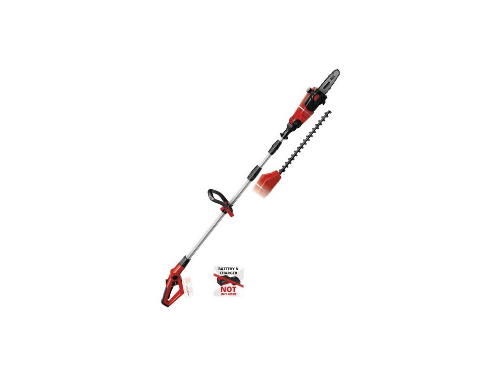 Der ebenfalls stufenlos verstellbare Zusatzhandgriff wird mit dem praktischen Schnellverschluss auf jeden Anwender angepasst. Um auch schwierige Schnitte in der Höhe sauber und präzise ausführen zu können, lassen sich der Motorkopf 7-fach und der Hauptgriff 4-fach neigen und somit auf jede Arbeitssituation abstimmen. Batterie und Ladegerät sind nicht im Lieferumfang enthalten.