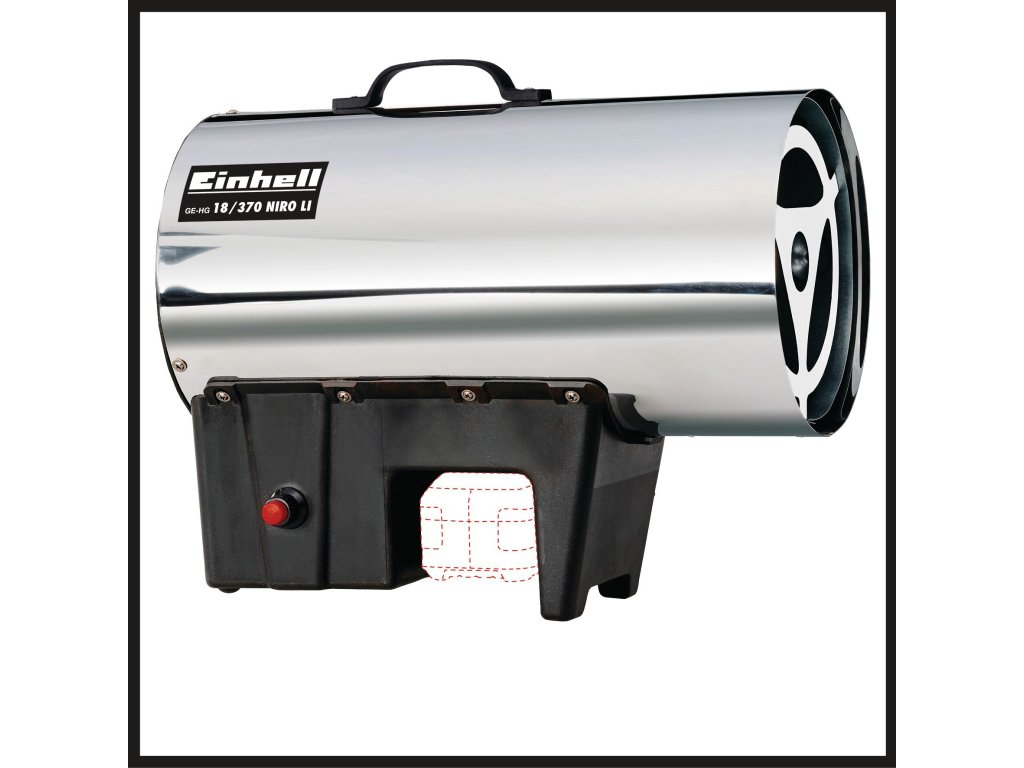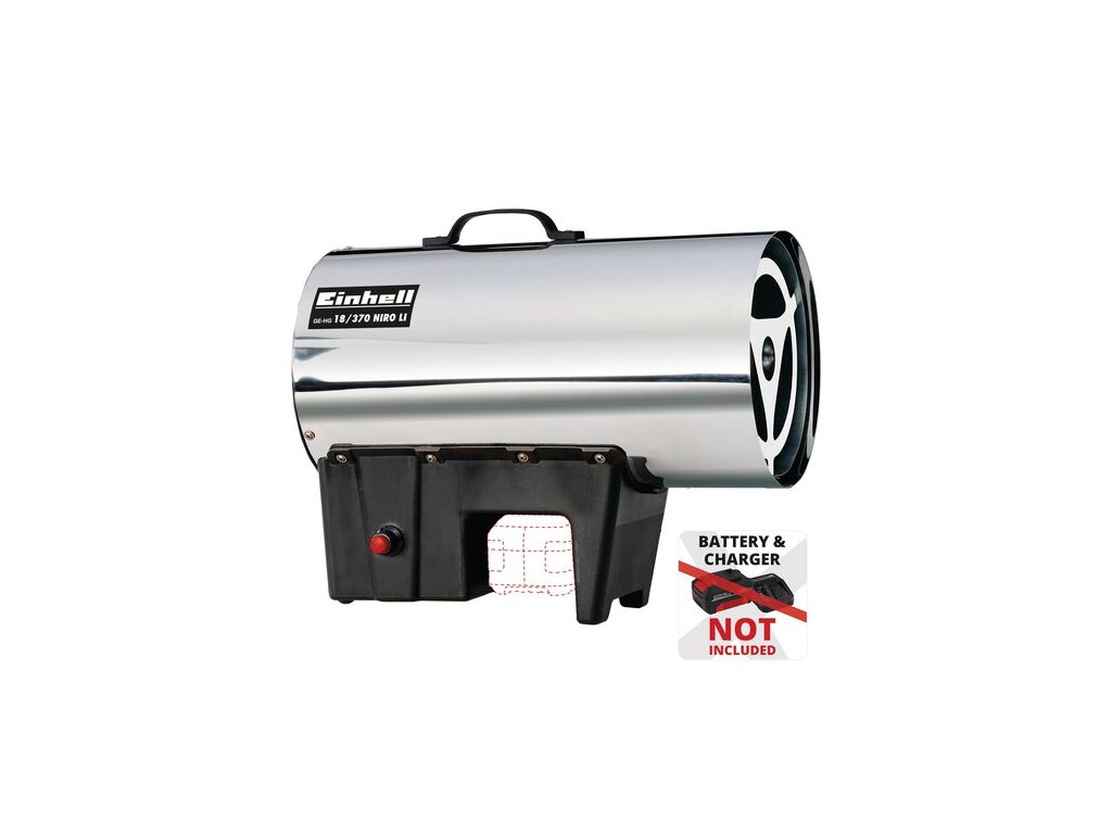 Der Einhell Akku-Heißluftgenerator GE-HG 18/370 Niro Li-Solo wandelt Propan-Gas in bis zu 37.000 Watt Nennwäreleistung um. Als Mitglied der Power X-Change-Familie konzipiert, ist für den Betrieb des Heißluftgenerators ein 18 Volt-Akku notwendig. Dieser ist separat erhältlich, zum Beispiel im praktischen Power X-Change Starter-Set. Das Gehäuse des Heißluftgenerator ist aus rostfreiem Edelstahl gefertigt, der Heizmantel ist aus verzinktem Stahlblech.