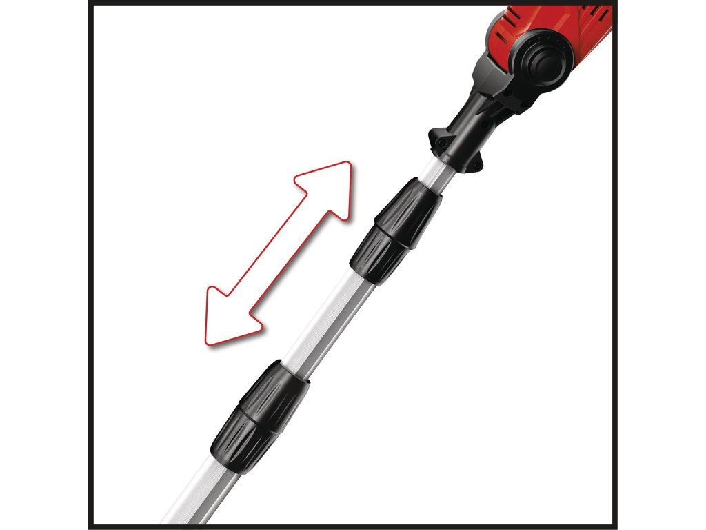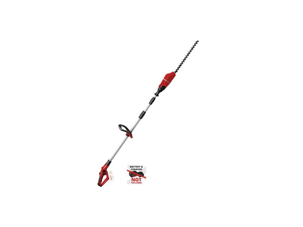 Die Akku Hoch-Heckenschere GE-HH 18/45 Li T ist ein sehr leistungsstarkes Gerät, das bei der stromnetzunabhängigen Pflege von Hecken, Sträuchern und Gebüschen auf großen Grundstücken und in Schrebergärten gute Dienste leistet. Dabei sorgt das Metallgetriebe für hohe Langlebigkeit und die aus lasergeschnittenem und diamantgeschliffenem Stahl gefertigten Messer für saubere Schnittresultate. Der stabile Aluminium-Teleskopstiel kann stufenlos auf jede Höhe eingestellt und arretiert werden. Der ebenfalls stufenlos verstellbare Zusatzhandgriff wird mit dem praktischen Schnellverschluss auf den Anwender angepasst. Um auch schwierige Vertikal- und Horizontalschnitte in der Höhe sauber und präzise ausführen zu können, lassen sich der Motorkopf 7-fach und der Hauptgriff 4-fach neigen und somit auf jede Arbeitssituation abstimmen. Im stabilen Köcher lässt sich die Strauchschere sicher und bequem transportieren und verstauen. Batterie und Ladegerät sind nicht im Lieferumfang enthalten.