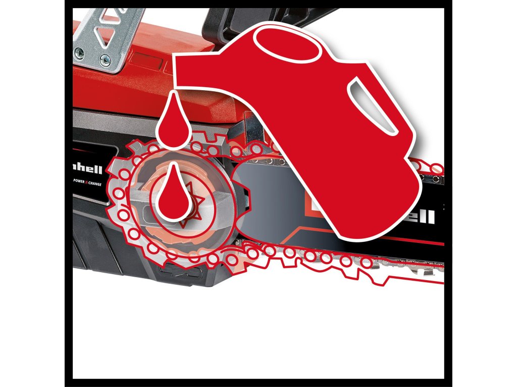 Der Ölbehälter der automatischen Kettenschmierung lässt sich dank der großen Öleinfüllöffnung bei Bedarf bequem nachfüllen. Im Set enthalten ist ein Ladegerät sowie ein 3,0 Ah Power X-Change Akku. Die leistungsstarke Batterie verfügt über eine Füllstandsanzeige. An drei LEDs kann bequem die Akkuladung abgelesen werden. Dieser System-Akku kann bei allen Mitgliedern der Power X-Change-Geräte verwendet werden. Das Schnellladegerät ist für alle Power X-Change-Akkus geeignet. Art.-Nr.: 4501760