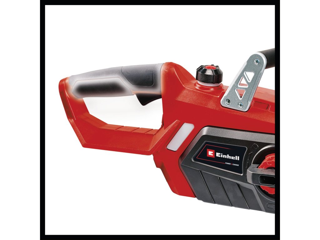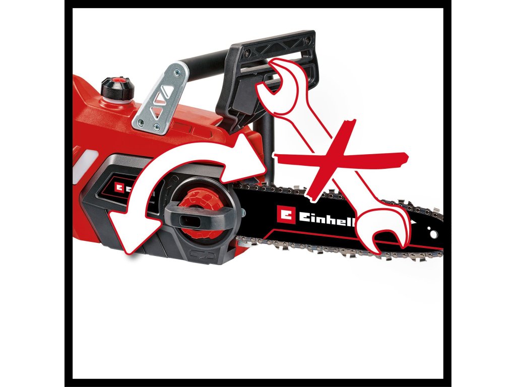 Die Einhell Akku-Kettensäge GE-LC 18/25 Li-Solo ist ein zuverlässiges Arbeitsgerät zum Lichten und Fällen kleinerer und mittlerer Bäume, zur Bearbeitung von Brennholz und zum Kürzen und Zerlegen von Bauholz. Die Kettensäge mit 23 cm Schnittlänge ist mit einer hochwertigen Kette mit 1,1 mm Treibgliedstärke, 40 Treibgliedern und 3/8" Kettenteilung ausgestattet. Für die optimale Sicherheit des Benutzers sorgt der Rückschlagschutz mit mechanischer Sofort-Kettenbremse. Dieser aktiviert sich unmittelbar beim Hochschlagen der Säge, sodass die Kette augenblicklich angehalten wird.