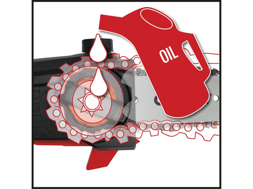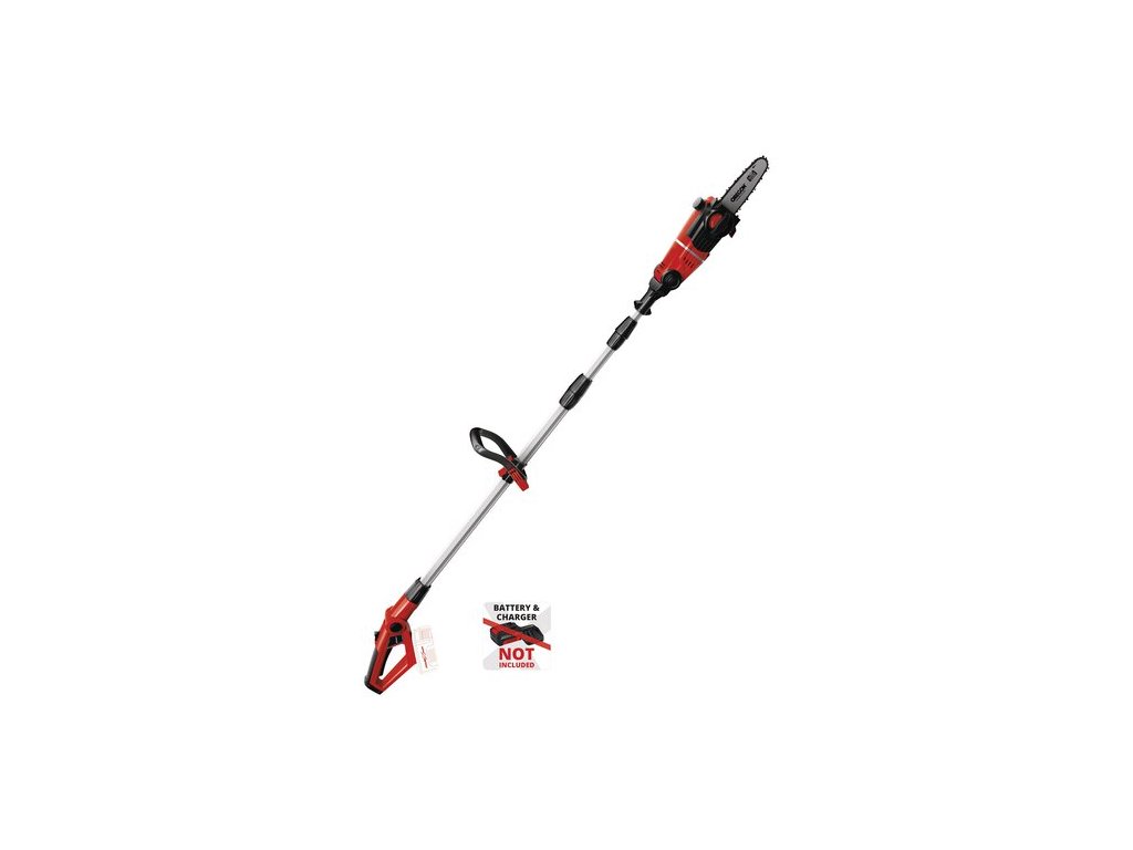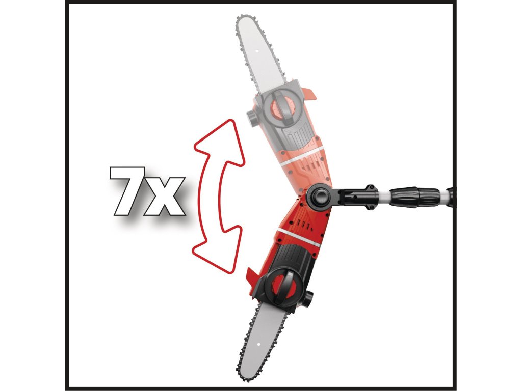Der um 90° drehbare Aufsatz sorgt dabei für mühelose Horizontalschnitte. Um auch schwierige Schnitte in der Höhe sauber und präzise ausführen zu können, lassen sich der Motorkopf 7-fach und der Hauptgriff 4-fach neigen und somit auf jede Arbeitssituation abstimmen. Der Krallenanschlag verhindert dabei ein Abrutschen beim Sägen. Die automatische Kettenschmierung über einen Ölbehälter versorgt die OREGON-Kette mit der nötigen Schmierung. Bei Bedarf kann sie mit der praktischen Kettenspannung werkzeuglos gespannt und gewechselt werden. Ein Kettenfangbolzen verhindert dabei zuverlässig das ungewollte Abrutschen der Kette vom Schwert. Akku und Ladegerät sind im Lieferumfang nicht enthalten.