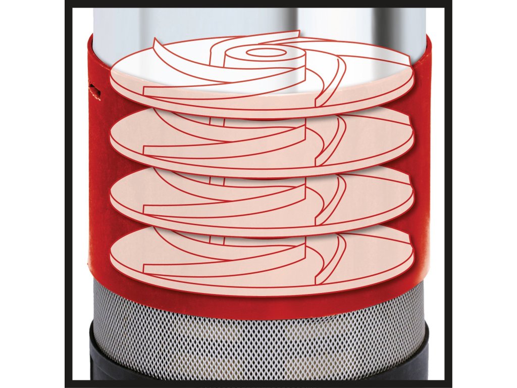 Die Einhell Tauchdruckpumpe GE-PP 1100 N-A mit Automatikfunktion schaltet das Gerät bei Wasseranforderung automatisch ein und auch wieder aus. Die Pumpe sorgt für den nötigen Druck, um Klarwasser aus der Regenwasser-Zisterne, dem Wasserreservoir und -schacht oder dem Gartenbrunnen an die gewünschte Stelle zu befördern. Selbst eine Förderhöhe von maximal 45 Meter stellt für die Pumpe kein Problem dar. Bei einer Eintauchtiefe von maximal 12 Meter arbeitet sie mit 1.100 Watt im Dauerbetrieb und ist dank einer 15 Meter langen Netzleitung flexibel einsetzbar in Garten und heimischem Außenanlagen. Die maximale Fördermenge ist auf 6.000 Liter je Stunde ausgelegt. Die Tauchdruckpumpe macht nicht nur äußerlich einen soliden Eindruck, sie wurde besonders robust konstruiert und mit wichtigen Sicherheitsmerkmalen ausgestattet. So sorgt ein 4-stufiges Laufradsystem für einen extra hohen Förderdruck. Das Gehäuse ist aus rostfreiem Edelstahl, der Druckanschluss mit Edelstahleinsatz ausgerüstet. Die hochwertige Gleitringdichtung ist Grundlage für eine lange Lebensdauer. Gut erreichbar ist der Schlauchanschluss der Größe 33,3 mm (1" IG) an der Pumpenoberseite. Die integrierte Trockenlaufsicherung und der Überlastschalter bewahren die Pumpe vor Schäden bei Unterbrechung der Wasserzufuhr.