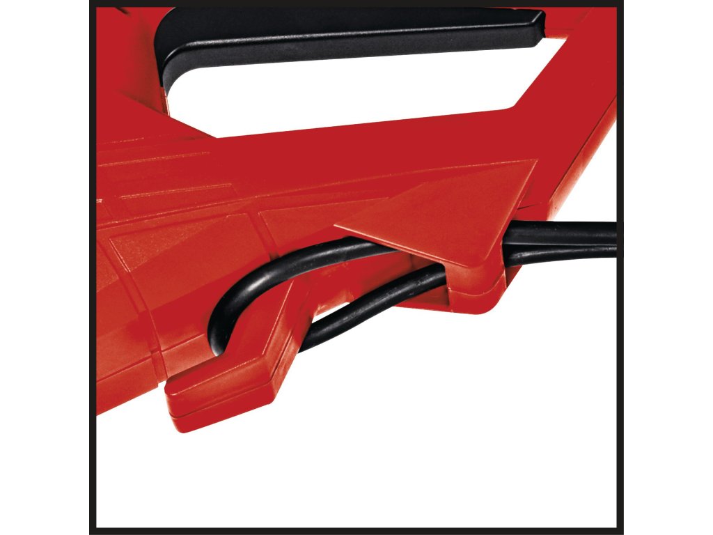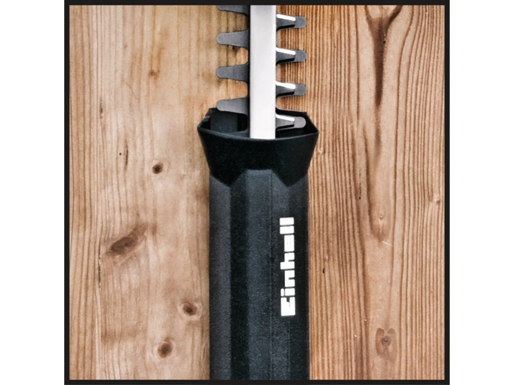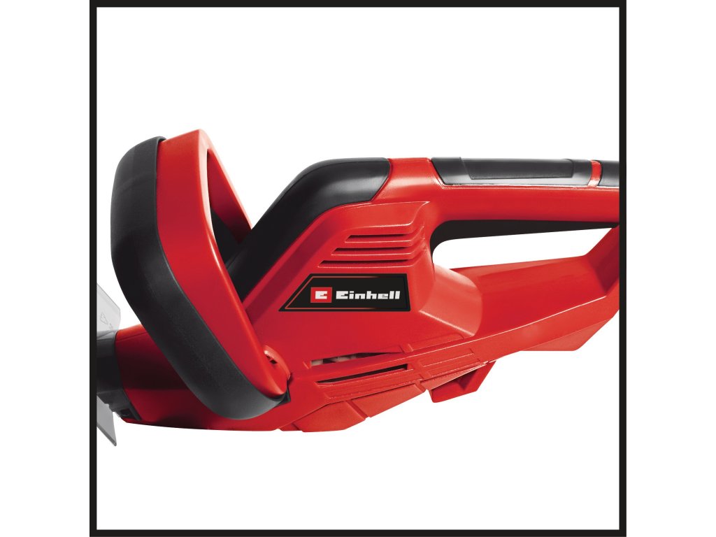 Der Zweihand-Sicherheitsschalter und der großflächige Handschutz der GH-EH 4245 sorgen für eine hohe Sicherheit während des Arbeitens. Die Messer werden durch eine Messerabdeckung aus Aluminium geschützt. Ein Zusatzhandgriff bietet hohe Ergonomie für komfortables Arbeiten. Das Zuleitungskabel ist durch eine Zugentlastung vor Beschädigung geschützt. Im stabilen Köcher lässt sich die Elektro-Heckenschere sicher transportieren.