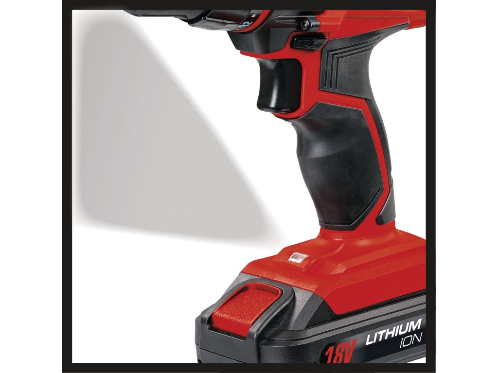 Der Einhell Akku-Bohrschrauber TC-CD 18-2 Li ist ein Allround-Werkzeug zum kraftvollen Schrauben und schnellen Bohren. Mit einem Zwei-Gang-Getriebe ausgestattet ist es ein idealer Helfer im Haus, der Werkstatt und der Garage. Ob mit dem Einhell Akku-Bohrschrauber TC-CD 18-2 Li in Materialen wie Holz, Stein oder Metall gebohrt werden soll oder ob das Werkzeug beim Lösen und Befestigen von Schrauben zum Einsatz kommt: dank der schlanken Bauform mit dem ergonomischen Softgripflächen liegt der Bohrschrauber gut in der Hand und ist angenehm zu bedienen.