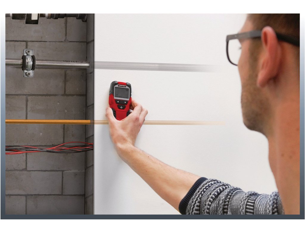 Das Einhell Digitale Ortungsgerät TC-MD 50 ist ein unverzichtbarer Helfer für Heim- und Handwerker: ob im Haus, auf der Baustelle oder bei Sanierungsarbeiten - das digitale Ortungsgerät ist ungeschlagen dabei sichere Ortungen in den Wänden durchzuführen. Dabei spürt das Gerät zuverlässig Metalle, Holz und elektrische Leitungen in Trockenbau auf: Eisenhaltige Metalle wie z.B. Stahl sowie stromführende Leitungen werden bis zu einer Tiefe von 50 Millimeter, nicht-eisenhaltige Metalle wie z.B. Kufper bis zu einer Erfassungstiefe von 38 Millimeter erfasst. Auch Holz wird bis zu einer Tiefe von 19 Millimeter geortet.