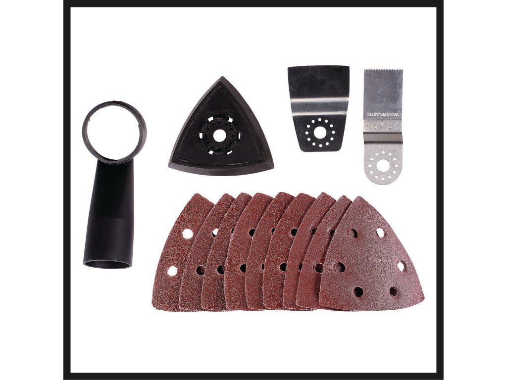 Das Multifunktionswerkzeug hat einen Oszillationswinkel von 3° und liegt dank seiner schlanken, ergonomischen Bauform mit Softgrip-Flächen jederzeit angenehm und sicher in der Hand. Die mitgelieferte Staubabsaugvorrichtung ist werkzeuglos montierbar. Die Lieferung umfasst ein Tauchsägeblatt für Holz und Kunststoff und einen Innensechskantschlüssel zum Werkzeugwechsel. Zusätzlich in der Lieferung enthalten sind eine Dreiecksschleifplatte, neun Schleifpapiere (3x K60, 3x K80, 3x K120) sowie ein Schaber.