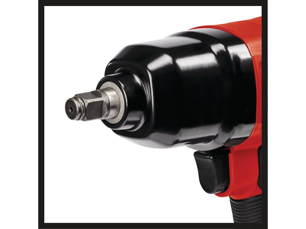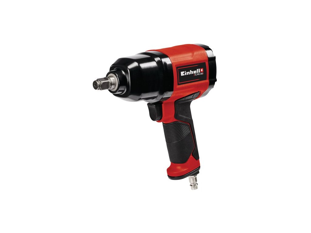 Der Einhell Druckluft-Schlagschrauber TC-PW 340 nimmt sich der Arbeiten in Heim, Werkstatt und Garage kraftvoll an. Der Schlagschrauber hat ein maximales Drehmoment von 340 Nm. Dabei sorgt der rutschfeste gummierte Griff in jeder Situation für sicheres und angenehmes Arbeiten. Ausgestattet mit Links- (einstufig) und Rechtslauf (dreistufig), stellt sich der Druckluft-Schlagschrauber einer Vielzahl von Aufgaben. Beste Performance bietet der Schlagschrauber dabei ab einem Schlauchinnendurchmesser von 9 Millimeter. Der maximale Arbeitsdruck beträgt 6,3 bar, die Gewindegröße 14 Millimeter. Zum Ausstattungsumfang gehören 8x Stecknüsse in den gängigen Größen 8/10/11/13/17/19/21/22 mm sowie 1x Ölfläschchen und 1x Stecknippel. So ist der Druckluft-Schlagschrauber TC-PW 340 von Einhell sofort einsatzbereit.