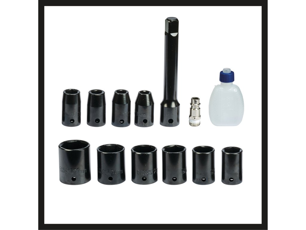 Ausgestattet mit Links- (einstufig) und Rechtslauf (dreistufig), stellt sich der Druckluft-Schlagschrauber einer Vielzahl von Heimwerker- und Do-it-yourself-Einsätzen. Beste Performance bietet er dabei ab einem Schlauchinnendurchmesser von 9 Millimeter. Der maximale Arbeitsdruck beträgt 6,3 bar, die Gewindegröße 19 Millimeter. Zum Ausstattungsumfang gehören 10 Stecknüsse in den Größen 8/10/11/13/17/19/21/22/24/27 Millimeter sowie 1x Ölfläschchen und 1x Stecknippel. Auch eine Verlängerung von 125 mm ist vorhanden. So ist der Druckluft-Schlagschrauber TC-PW 610 von Einhell sofort einsatzbereit.