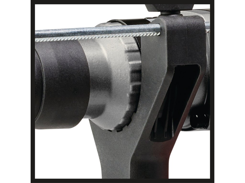 Der Einhell Bohrhammer TC-RH 28 3F vereint drei Funktionen in einem Gerät: Bohren, Hammerbohren und Meißeln mit Fixierung. Das pneumatische Schlagwerk sorgt für einen idealen Vortrieb, sowohl bei Stemm- und Abbrucharbeiten als auch beim Bohren und Hammerbohren z. B. in Beton oder Stein. Mit 950 Watt Leistung, 3,5 Joule Schlagstärke und der fein dosierbaren Drehzahlelektronik wird sowohl kraftvoll als auch optimal an das jeweilige Material angepasst gearbeitet. Dabei schafft der Bohrhammer Bohrlöcher bis zu einem Durchmesser von 28 mm in Beton. Dank des 2 m langen Kabels lässt er dabei genug Raum für viel Bewegungsfreiheit. Genau wie das Getriebe, ist der stufenlos einstellbare Bohrtiefenanschlag aus massivem Metall. Er sorgt für exakte Bohrungen.