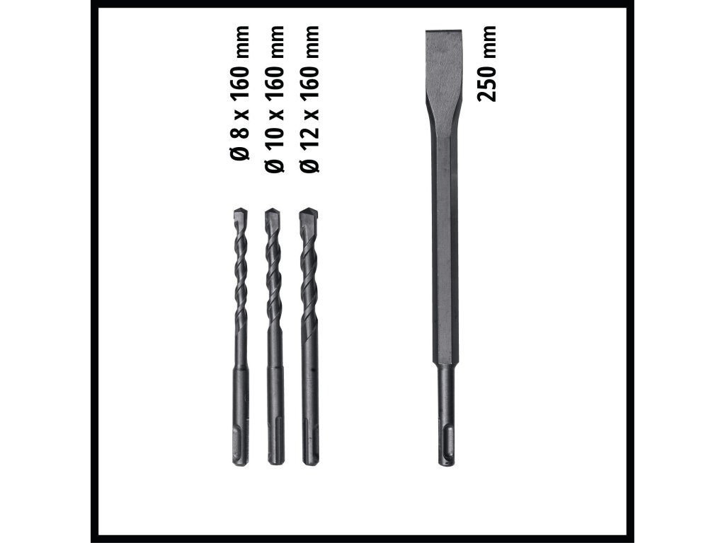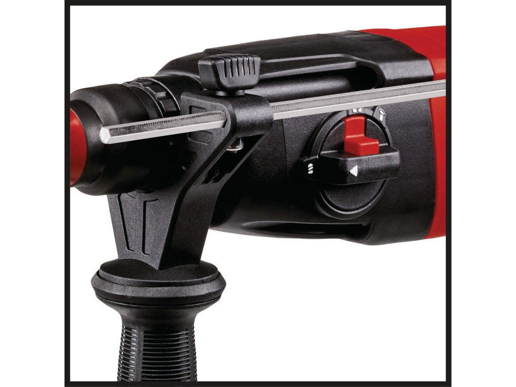 Die Dauerlaufarretierung sorgt für angenehmes und einfaches Arbeiten. Die robuste SDS-plus-Werkzeugaufnahme ist mit Halbautomatik ausgerüstet und die Drehzahl-Elektronik ermöglicht material- & anwendungsgerechtes Arbeiten. Der Bohrtiefenanschlag aus massivem Metall ist stufenlos einstellbar. Im Einsatz angenehm zu handhaben ist der Bohrhammer unter anderem durch den ergonomischen Handgriff mit Softgrip. Die Lieferung erfolgt inkl. 3 Bohrer und Flachmeißel im praktischen Transport- und Aufbewahrungskoffer E-Box.