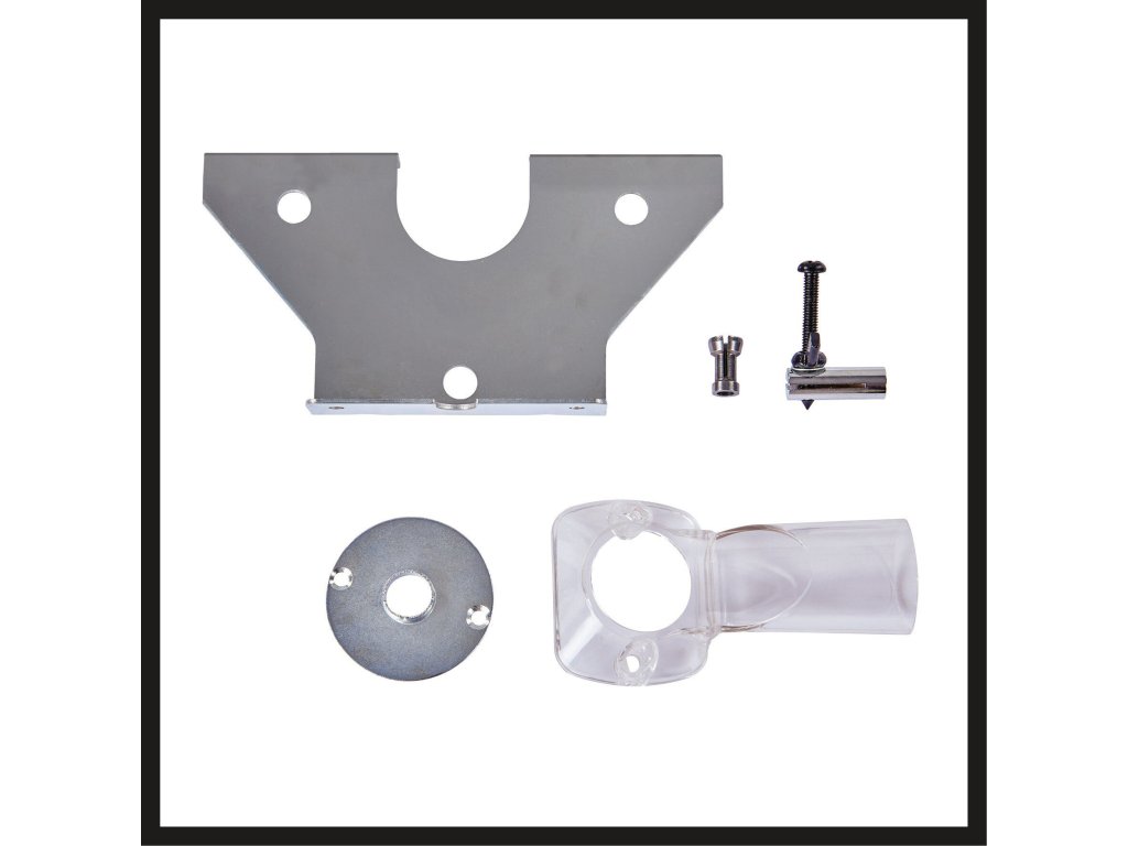 Die Spindelarretierung ermöglicht einen schnellen, mühelosen Werkzeugwechsel, wobei das ausgewogene Design für sicheren Stand des Gerätes sorgt. Die Spannzange erlaubt die Verwendung von Werkzeugen mit einem Schaftdurchmesser von 6 mm oder 8 mm. Die Staubabsaugung über einen Adapter sorgt für Ordnung und Sauberkeit. Zum umfangreichen Zubehör der TC-RO 1155 E gehören ebenso ein Parallelanschlag, eine Zirkelspitze, eine Kopierhülse und das passende Werkzeug für den Fräserwechsel.