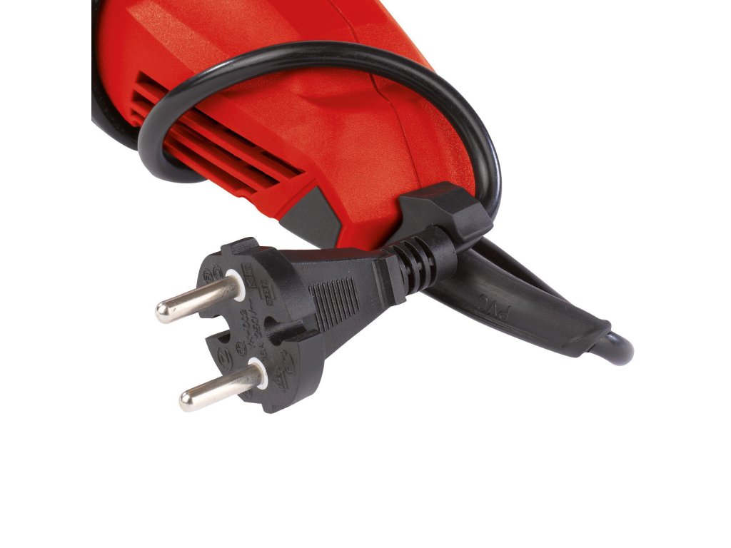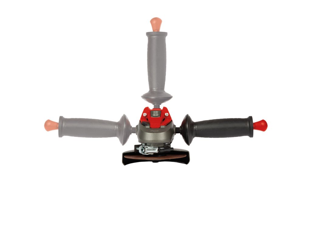 Darüber hinaus lässt sich der in drei Positionen fixierbare Zusatzhandgriff optimal auf das jeweilige Werkstück einstellen und gewährleistet damit zuverlässigen Halt für komfortables, sicheres Arbeiten. Der Stirnlochschlüssel wird im Zusatzhandgriff verwahrt, so dass er immer zur Stelle ist. Dank Kabelclip zur Fixierung des aufgewickelten Kabels ist der TE-AG 115 immer ordentlich und sicher verstaut. Im Lieferumfang ist keine Trennscheibe enthalten.