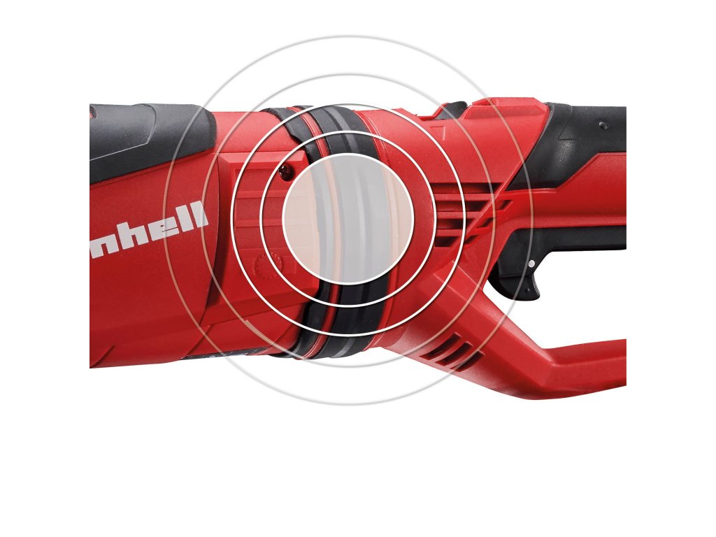 Der TE-AG 230 ist mit einem flachen, robusten Metallgetriebekopf ausgestattet, der für optimale Kraftübertragung und vibrationsarmen Lauf sorgt, was beides das Arbeiten an schwer zugänglichen Stellen erleichtert Der Softgrip, sowie der Anti-Vibrations-Hauptgriff in Kombination mit dem drehbaren Handgriffermöglicht die komfortable Handhabung des Winkelschleifers mit seiner immensen Kraft. Der in drei Positionen fixierbare Zusatzhandgriff kann passgenau auf das jeweilige Werkstück eingestellt werden, so dass perfekter Halt für sicheres und zügiges Arbeiten garantiert ist. Dank Kabelclip zur Fixierung des aufgewickelten Kabels ist der TE-AG 230 im Handumdrehen ordentlich und sicher verstaut. Der TE-AG 230 wird mit Stirnlochschlüssel aber ohne Trennscheibe ausgeliefert.