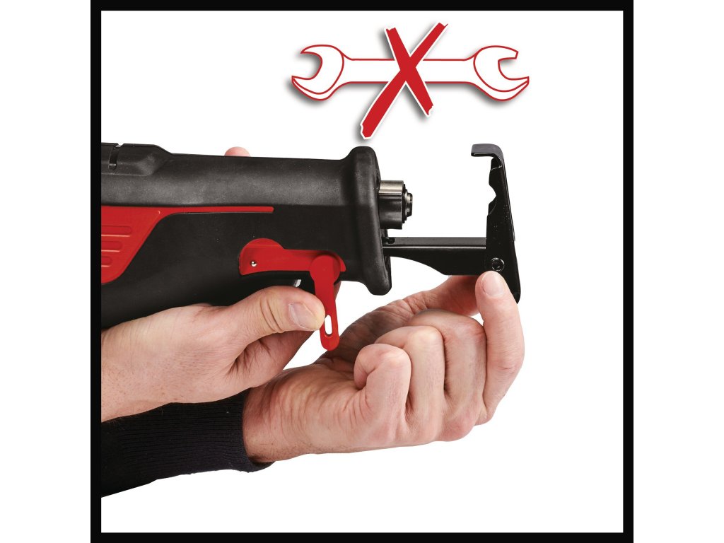 Die Schnitttiefe in Holz beträgt 0,2 m, in Stahl 0,02 m. Mit dem werkzeuglos verstellbaren Sägeschuh lässt sich das Sägeblatt optimal nutzen. Der Sägeblattwechsel erfolgt schnell und werkzeuglos. Gut in der Hand liegt die Universalsäge durch den großen Softgrip-Bereich, der komfortables und vor allem sicheres Arbeiten erlaubt. Dabei wurde bei der Konzipierung auf eine ergonomische und schlanke Bauform geachtet, die ein einfaches Handling bietet. Zum Lieferumfang gehört ein Sägeblatt für Holz.