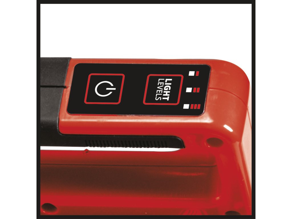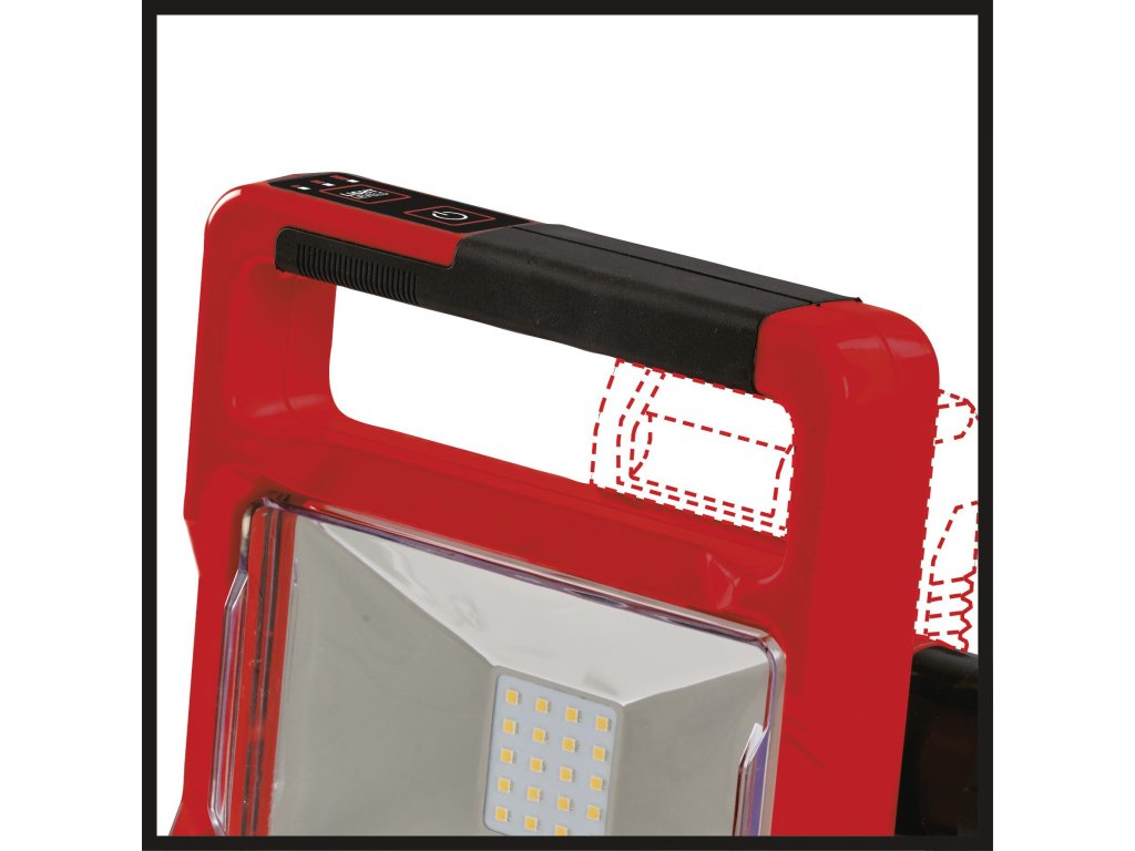 Denn die Einhell Akku-Lampe TE-CL 18/2000 LiAC – Solo ist höchst flexibel dank des schwenkbaren Leuchtkopfes. Dabei ist die Akku-Lampe tragbar und handlich. Die Hybridfunktion ermöglicht zudem ständige Einsatzbereitschaft, denn neben dem Betrieb mit dem Lithium Ionen-Akku kann die Leuchte auch mit dem Strom eines 220-Volt-Anschlusses gespeist werden. Dank zahlreicher Befestigungsmöglichkeiten sind dem universellen Einsatz quasi keine Grenzen gesetzt. Die Lieferung erfolgt ohne Akku und ohne Ladegerät. Diese sind separat erhältlich, zum Beispiel als praktisches Starter-Set für die Geräte der Power X-Change-Familie.