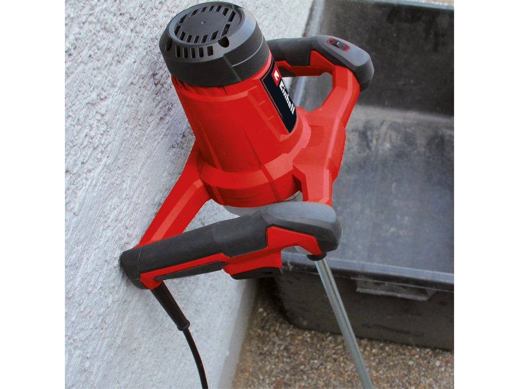 Dank des großen ergonomischen Griffbügels hat man den Mörtelrührer stets perfekt im Griff und das 3 m lange robuste Kunststoffkabel bietet jederzeit ausreichend Bewegungsradius. Der Rührer läuft gefühlvoll per Softstart an, und die verbaute dynamische Drehzahlregelung ermöglicht die präzise Anpassung der Drehzahl ohne Drehzahlrückgang unter Last auch während des Betriebs. An der robusten Rühreraufnahme können alle herkömmlichen Rührwerkzeuge mit M14 Gewinde betrieben werden. Im Lieferumfang befindet sich zudem ein Mörtelrührer mit Ø 133 mm.