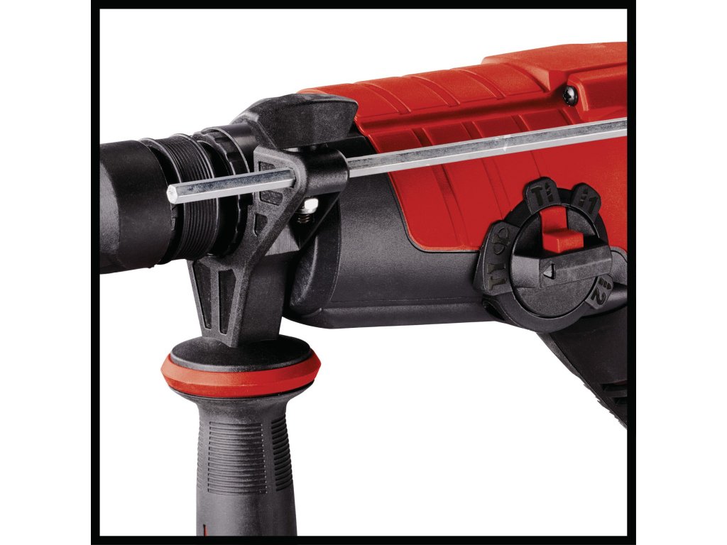 Der Einhell Bohrhammer TE-RH 28 5F ist ein multifunktionelles Werkzeug, das stets griffbereit in Garage oder Werkstatt ein unersetzlicher Helfer ist. Fünf Funktionen in einem vereint der Bohrhammer: Bohren oder Hammerbohren, Meißeln mit und ohne Fixierung und natürlich Schrauben, dafür ist der robuste Bohrhammer von Einhell optimal gerüstet. Das Zwei-Gang-Getriebe ist optimal ausgelegt für Bohr- und Schraubarbeiten in hartes Material: