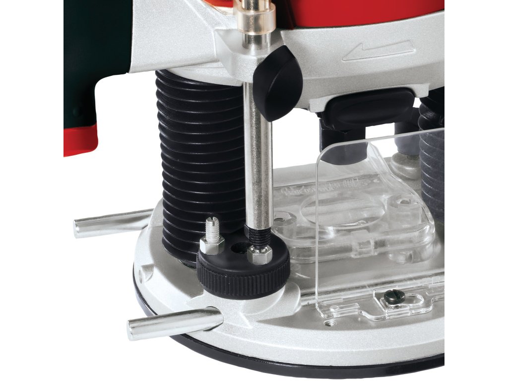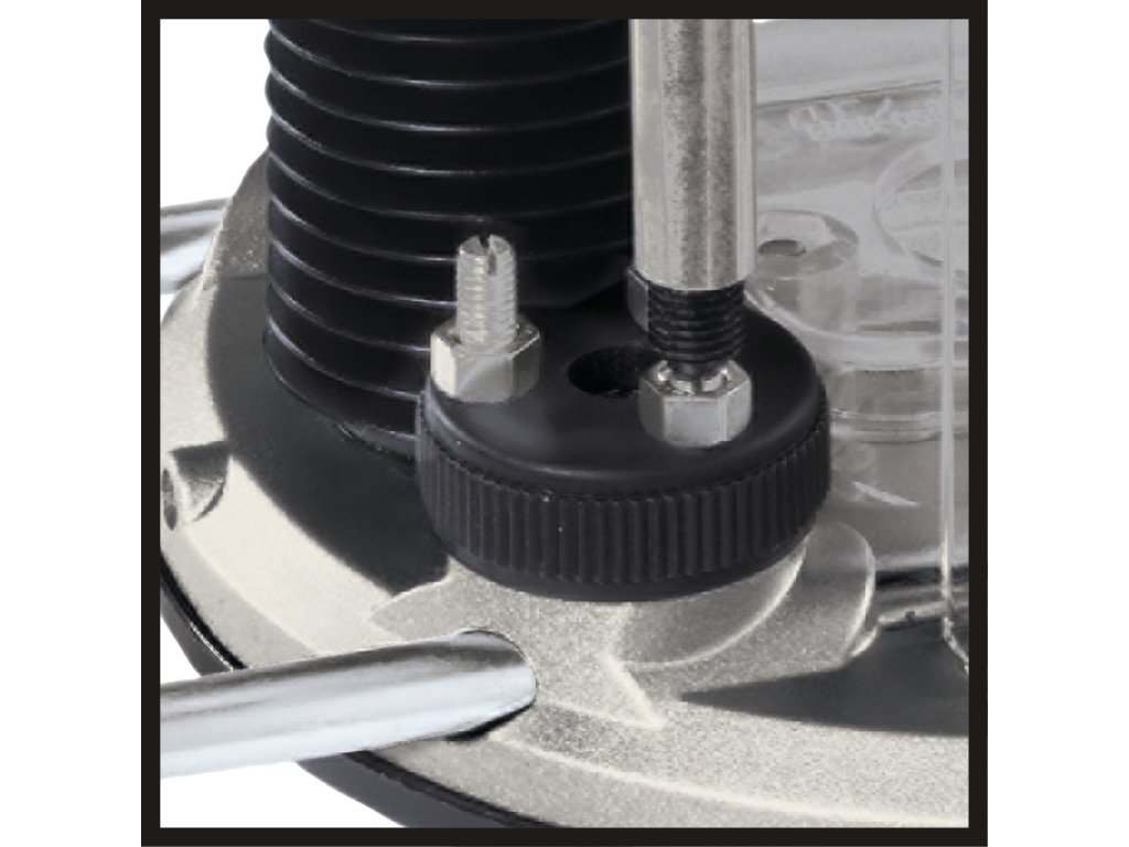Die Oberfräse TE-RO 1255 E ist ein hochwertiges, leistungsstarkes Gerät, das dem Experten anspruchsvollste Fräsarbeiten in Massivholz, Sperrholz und Faserplatten ermöglicht. Die Frästiefe ist leicht über den Revolveranschlag vorwählbar und über die Tiefen-Feineinstellung auch exakt nachzujustieren. Ein Späneschild bietet zusätzlichen Schutz. Dank Regelelektronik lässt sich die Drehzahl der TE-RO 1255 E optimal an die Anforderungen von Material und Fräser anpassen.