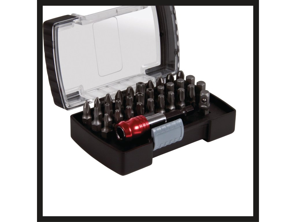 Das in sieben Stufen einstellbare Drehmoment des TE-SD 3,6 Li Kit sorgt bei jeder Schraubaufgabe für präzise Dosierung der über ein robustes Metall-Getriebe mit Rechts- und Linkslauf übertragenen Kräfte. Für sichere Fixierung und schnellen Austausch der Bits, verfügt das Gerät über eine Bit-Verriegelung. Ein Magnet-Schraubenhalter erspart die dritte Hand. Der Softgrip erlaubt eine sichere und komfortable Handhabung. Die helle Zweifach-LED-Leuchte bringt Licht in jede Arbeitssituation. Dank 3-stufiger LED-Batterieanzeige und Ladekontrollleuchte ist der Ladezustand auf einen Blick erkennbar. Zum Zubehör gehört eine 32-tlg. Bit-Box, die alle gängigen Bits enthält. Das Gerät wird in einer praktischen Metall-Geschenkbox geliefert.