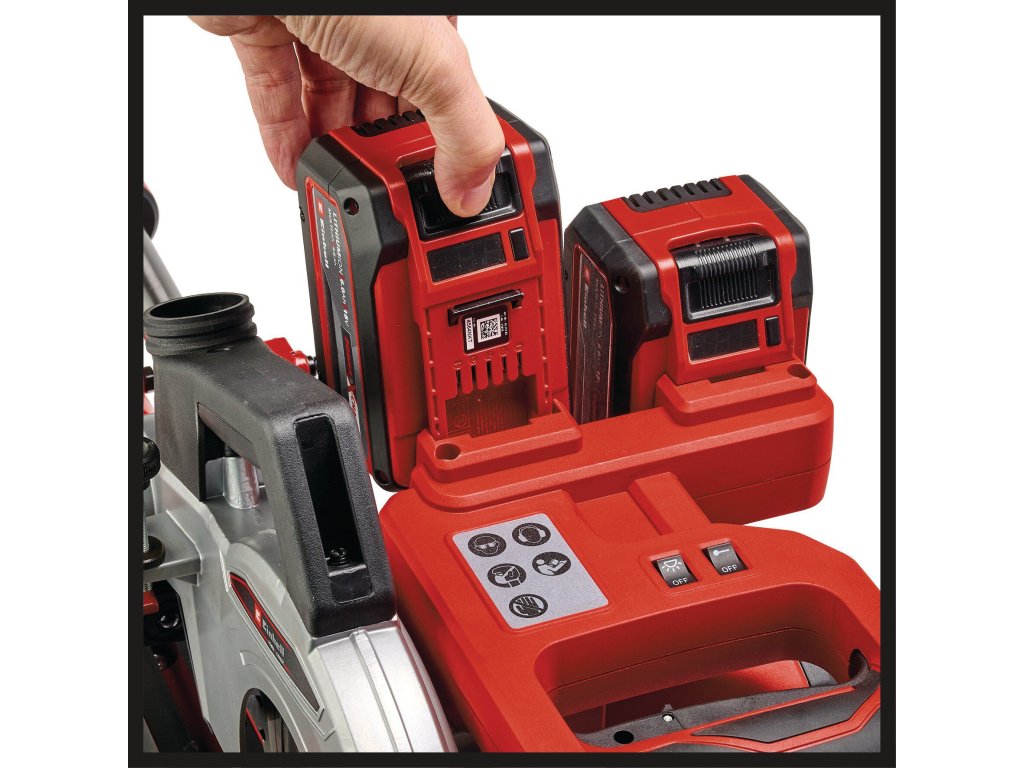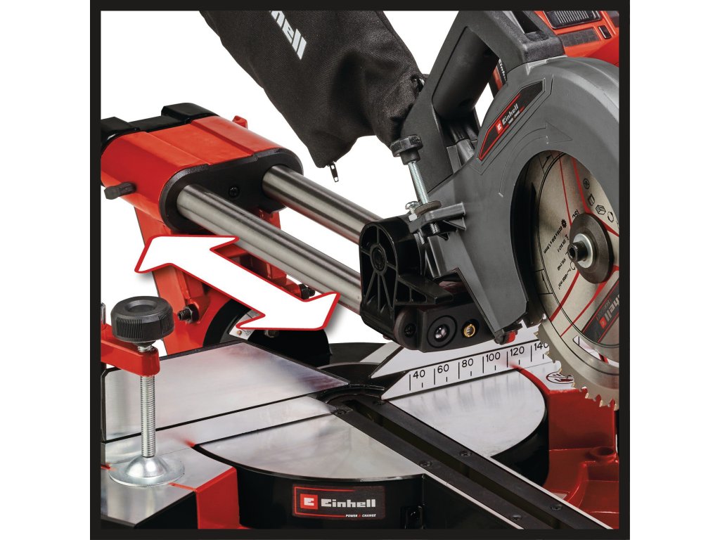 Die Einhell Akku-Zug-Kapp-Gehrungssäge TE-SM 36/210 Li – Solo kann flexibel bei Arbeiten rund ums Holz eingesetzt werden, um Gehrungen zu schneiden, zu kappen oder auch Parkett zu kürzen. Die Akku-Version der Säge bringt einen unbegrenzten Aktionsradius: keine störende Kabel bei der Arbeit, kein Aufwickeln nach der Arbeit. Als Mitglied der Power X-Change-Familie können alle Akkus der leistungsstarken Lithium-Ionen-Reihe mit der Zug-Kapp-Gehrungssäge kombiniert werden. Für optimale Ergebnisse wird mindestens ein 2,5 Ah Plus-Akku der PXC-Reihe empfohlen, dieser ist separat erhältlich. Die Einhell Zug-Kapp-Gehrungssäge ist mit einer leichtgängigen Zugfunktion ausgestattet, die auch für breitere Werkstücke geeignet ist.