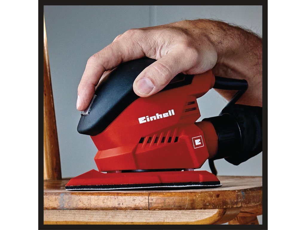 Dank seines ergonomischen Designs mit Softgrip liegt der TH-OS 1016 hervorragend in der Hand und lässt sich präzise führen, um einwandfreie Schleifresultate zu erzielen. Sauberes Arbeiten ermöglicht die aktive Staubabsaugung mit Filterbeutel. Dank Staubabsaugungsadapter kann sogar ein Staubsauger angeschlossen werden, der den Schleifstaub direkt absaugt. Damit die Arbeit sofort beginnen kann, ist im Lieferumfang bereits Schleifpapier enthalten.