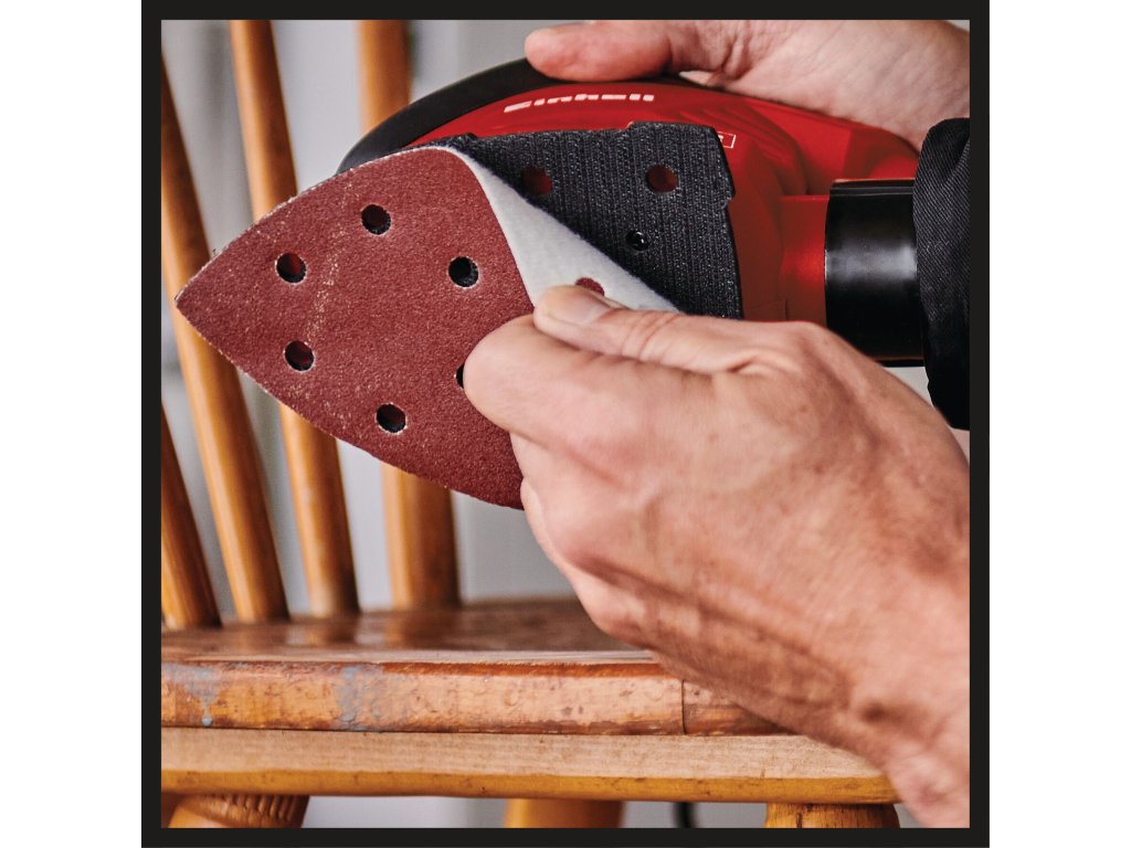 Der TH-OS 1016 Multischleifer ist ein hochwertiger, handlicher Alleskönner, der höchste Ergonomie mit maximaler Funktionalität verbindet, um Oberflächen einen guten Schliff zu verpassen. Aufgrund seiner ultrakompakten Bauweise spielt er seine Qualitäten besonders an schwer zugänglichen und kleineren Flächen, Ecken und Kanten voll aus. Er ist mit einem Klettsystem ausgestattet, mit dem sich Schleifpapiere in Sekundenschnelle wechseln lassen und faltenfrei an der Schleifplatte anliegen.