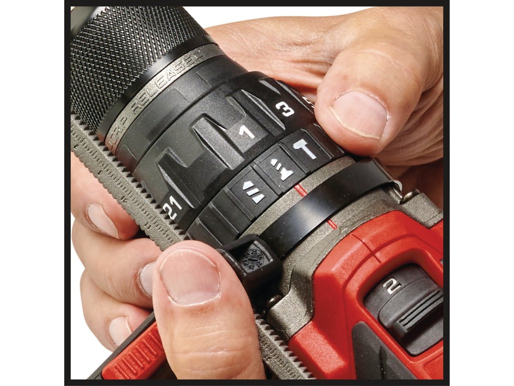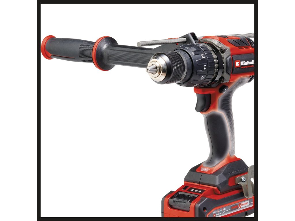 Der Einhell Professional Akku-Schlagbohrschrauber TP-CD 18/120 Li-i BL - Solo ist die ideale Ergänzung für die Werkstatt eines jeden ambitionierten Heimwerker-Profis. Als Teil der Power X-Change-Familie ist er kompatibel mit jedem Ladegerät und jedem Akku des innovativen Systems. Angetrieben wird das Gerät von dem Einhell PurePOWER Brushless Motor. Dieser bürstenlose Motor bietet mehr Kraft und eine längere Laufzeit als herkömmliche Kohlebürsten-Motoren. Nach einer Online-Registrierung gelten 10 Jahre Garantie auf den Brushless-Motor. Mit seiner Schlagbohrfunktion unterstützt er den professionellen Handwerker bei Arbeiten an widerstandsfähigen Materialien wie Stein oder Beton. Darüber hinaus verfügt der Schlagbohrschrauber über ein 2-Gang-Getriebe, das schnelles Schrauben, Bohren und kraftvolles Schlagbohren ermöglicht. Die Drehmomentrutschkupplung verhindert dabei das Überdrehen der Schrauben. Das harte Drehmoment von 120 Nm ist in 21 Drehmomentstufen einstellbar.