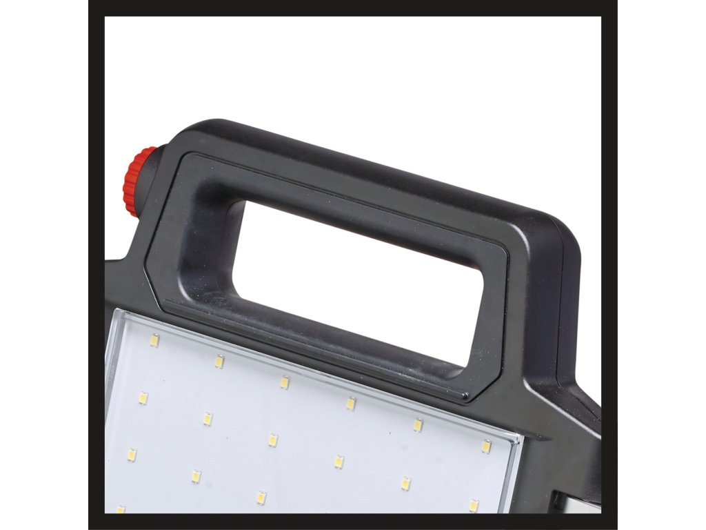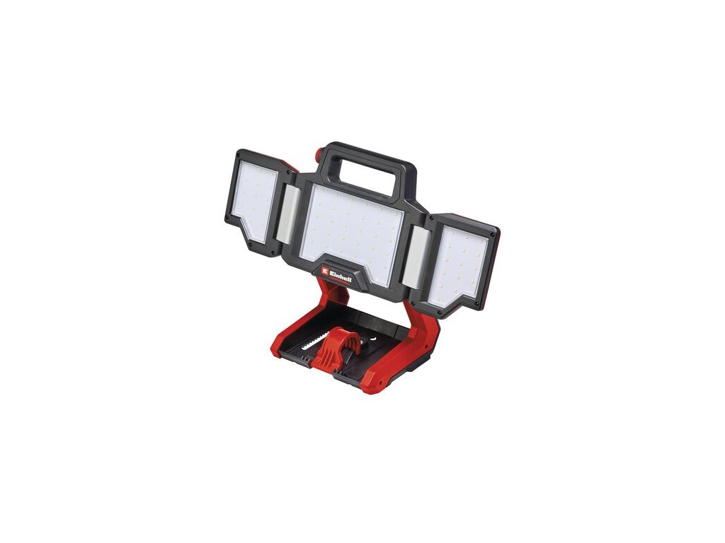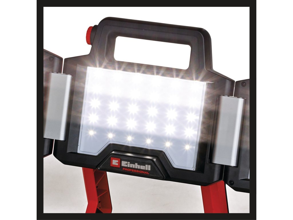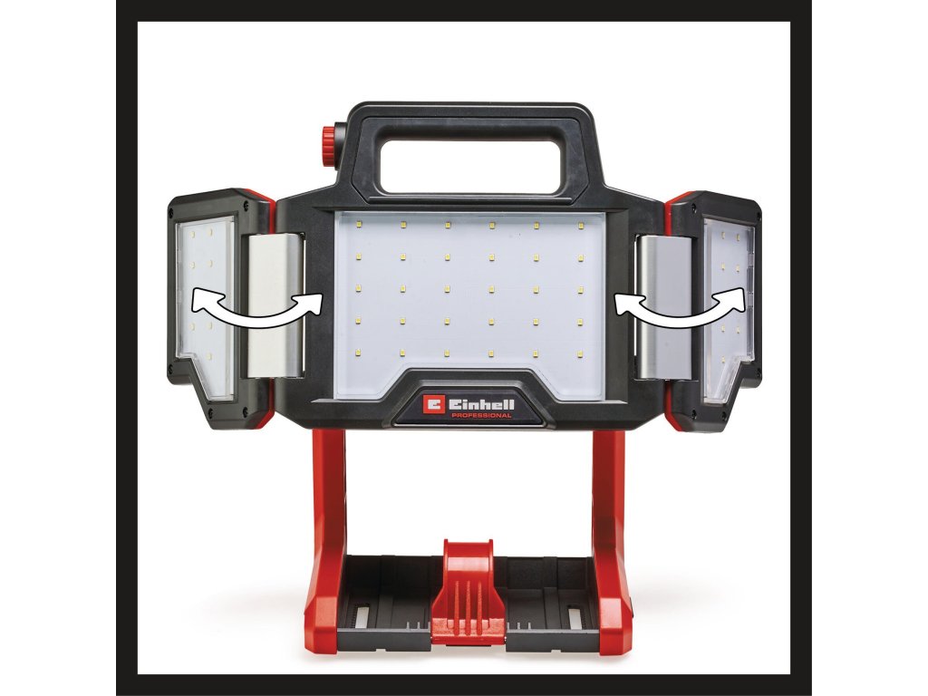 Die Einhell Akku-Lampe TP-CL 18/3000 Li - Solo bringt Licht ins Dunkel, ob auf der Baustelle, bei Einsätzen in der Werkstatt, Garage oder im Garten. Für optimale Helligkeit sorgt ein leistungsfähiger Lithium-Ionen-Akku aus der innovativen Power X-Change-Familie. Die helle Lampe ist Mitglied der Power X-Change-Familie, das bedeutet: Jeder Akku ist mit jedem Gerät aus dieser intelligent konzipierten Systemreihe kombinierbar. Insgesamt 60 leistungsstarke und dimmbare LEDs mit bis zu 3000 Lumen sorgen dabei für eine optimale Ausleuchtung, und das in jedem Winkel und in jeder Ecke. Denn die Einhell Akku-Lampe TP-CL 18/3000 Li ist höchst flexibel dank des schwenkbaren Leuchtkopfes. Zusätzlich können die beiden Leuchtpaneele links und rechts so verstellt werden, dass eine großflächige Beleuchtung von bis zu 270° möglich wird. Für helle Lichtverhältnisse sorgt dabei eine neutral-weiße Lichtfarbe von 5700 K. Die Akku-Lampe ist tragbar und handlich dank eines integrierten Tragegriffs mit Softgrip-Oberfläche. Dank zahlreicher Befestigungsmöglichkeiten durch integrierte Ösen oder einem Befestigungshaken sind dem universellen Einsatz keine Grenzen gesetzt. Die Lieferung erfolgt ohne Akku und ohne Ladegerät. Diese sind separat erhältlich, zum Beispiel als praktisches Starter-Set.