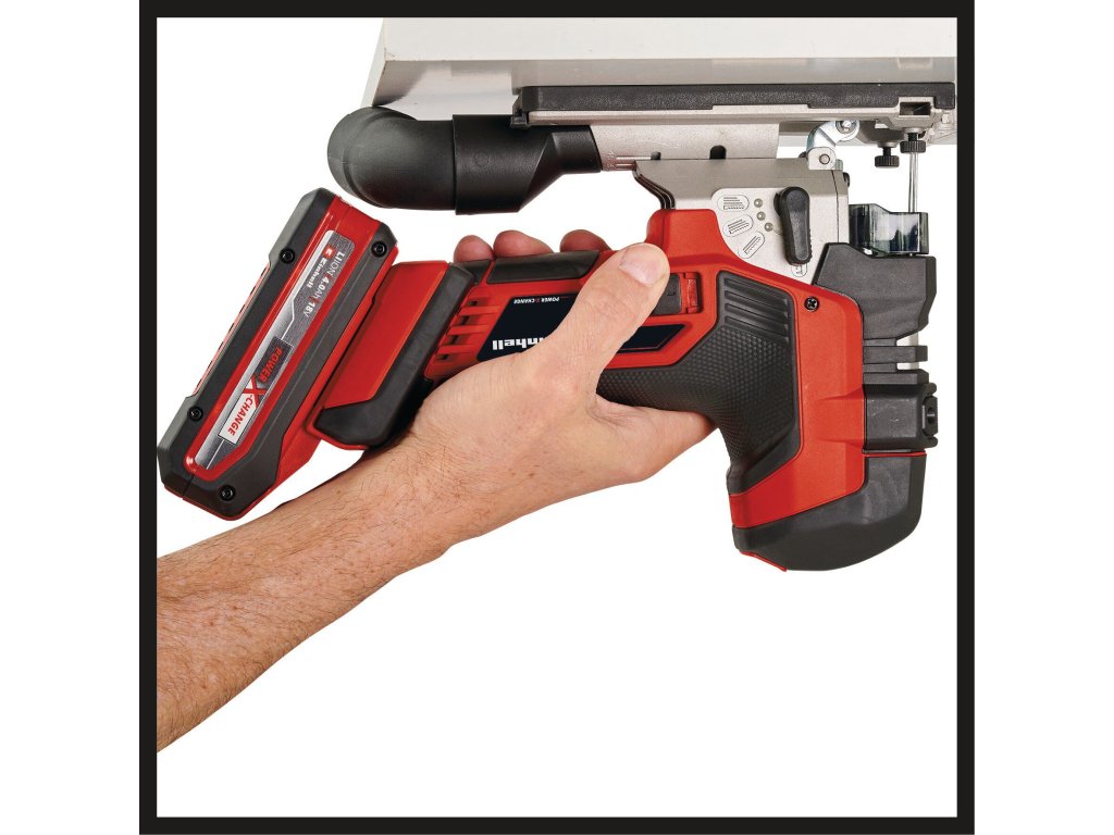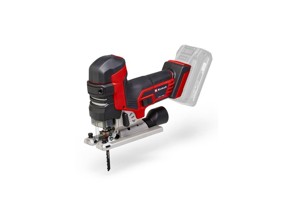 Die werkzeuglose Sägeblattaufnahme erspart unnötige Handgriffe und ermöglicht einen schnellen und einfachen Wechsel des Sägeblatts. Für beste Sicht beim Arbeiten sorgt die Staubabblasfunktion oder alternativ der mitgelieferte Absaugadapter, an den zum Beispiel ein Einhell Nass-Trockensauger angeschlossen werden kann. Die Kunststoffgleiteinlage schont besonders empfindliche Werkstücke und der Spanreißschutz sorgt für ausrissfreie Schnitte. Die stabile Aluminium-Basisplatte sorgt für exakte Schnittwinkel. Zum Lieferumfang zählen drei Stichsägeblätter für Holz. Die Lieferung erfolgt ohne Akku und Ladegerät. Diese sind separat erhältlich, zum Beispiel als praktisches Starter-Set.